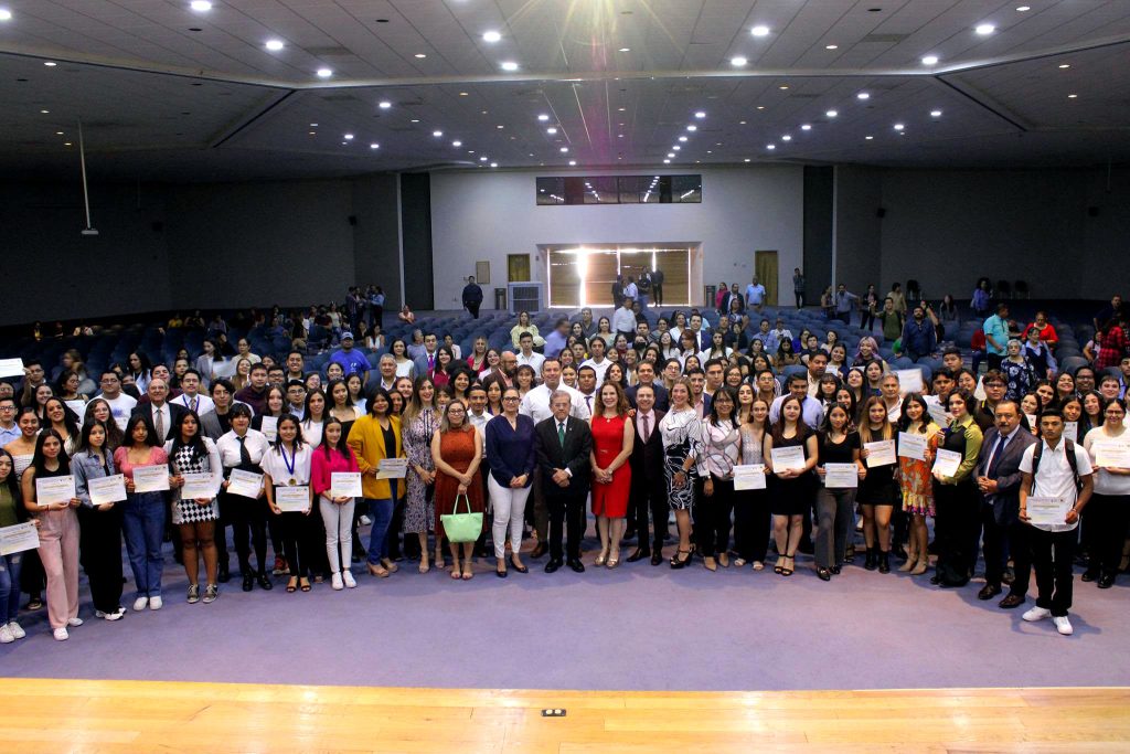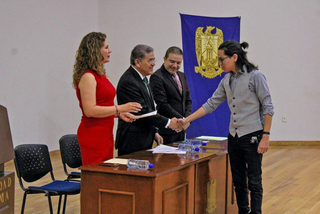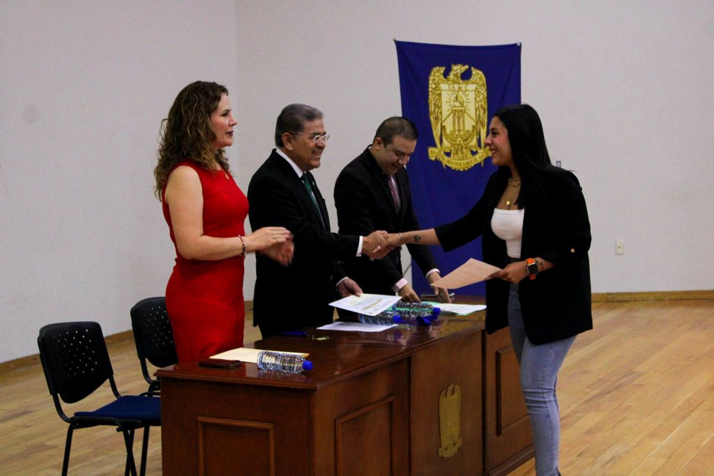 La ceremonia se llevó a cabo en el Centro Cultural “Braulio Fernández Aguirre” de Ciudad Universitaria Torreón, con la presencia del rector de la máxima casa de estudios, Salvador Hernández Vélez, la coordinadora de UT, Sandra López Chavarría, el jefe del Departamento de Asuntos Académicos, José Ángel Pineda Castro y los galardonados.
