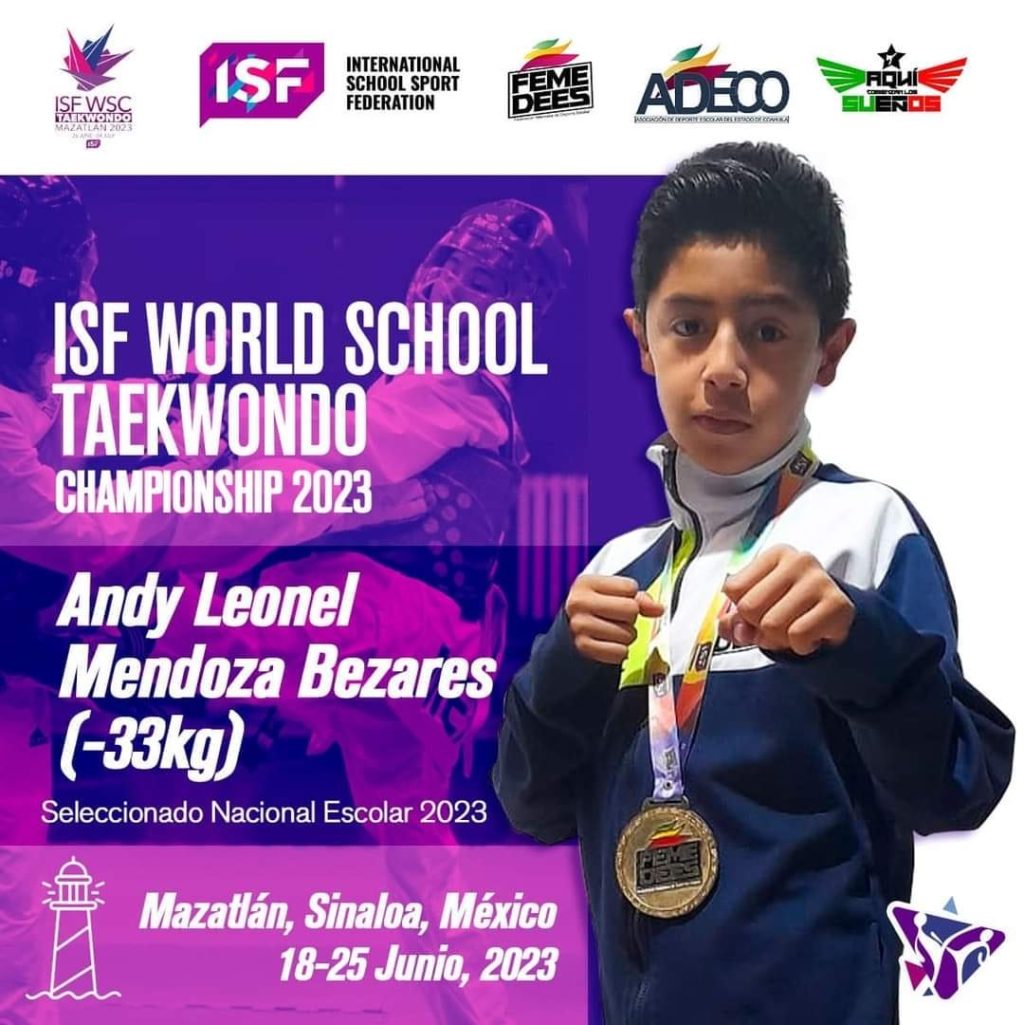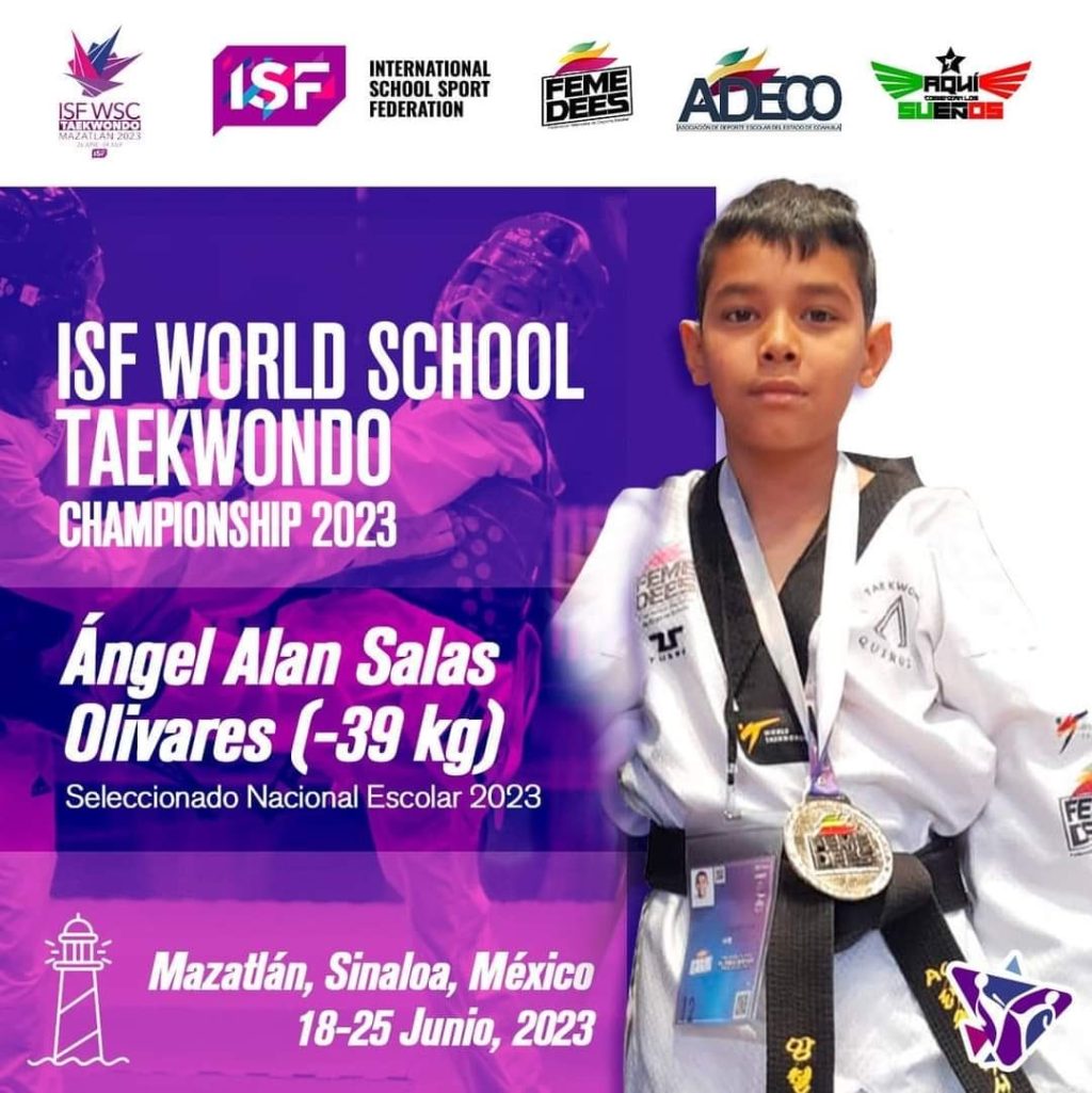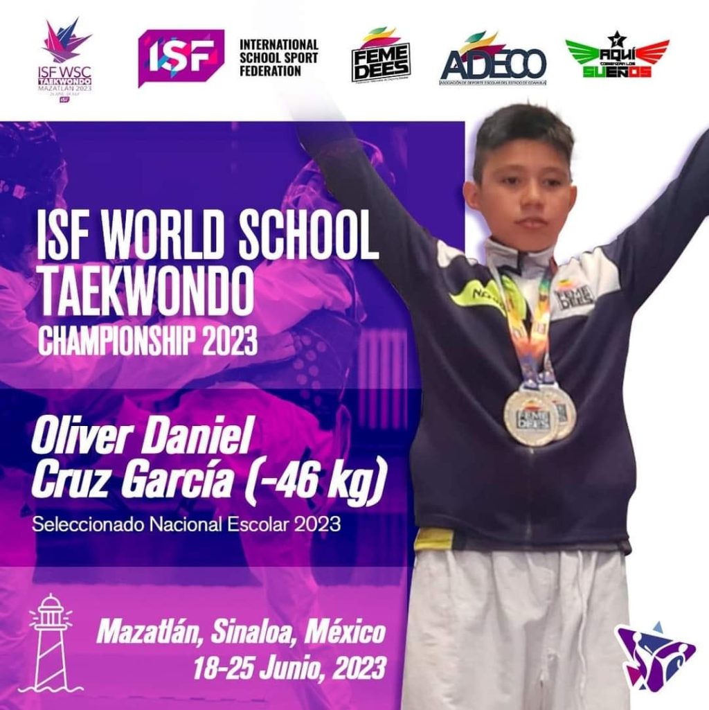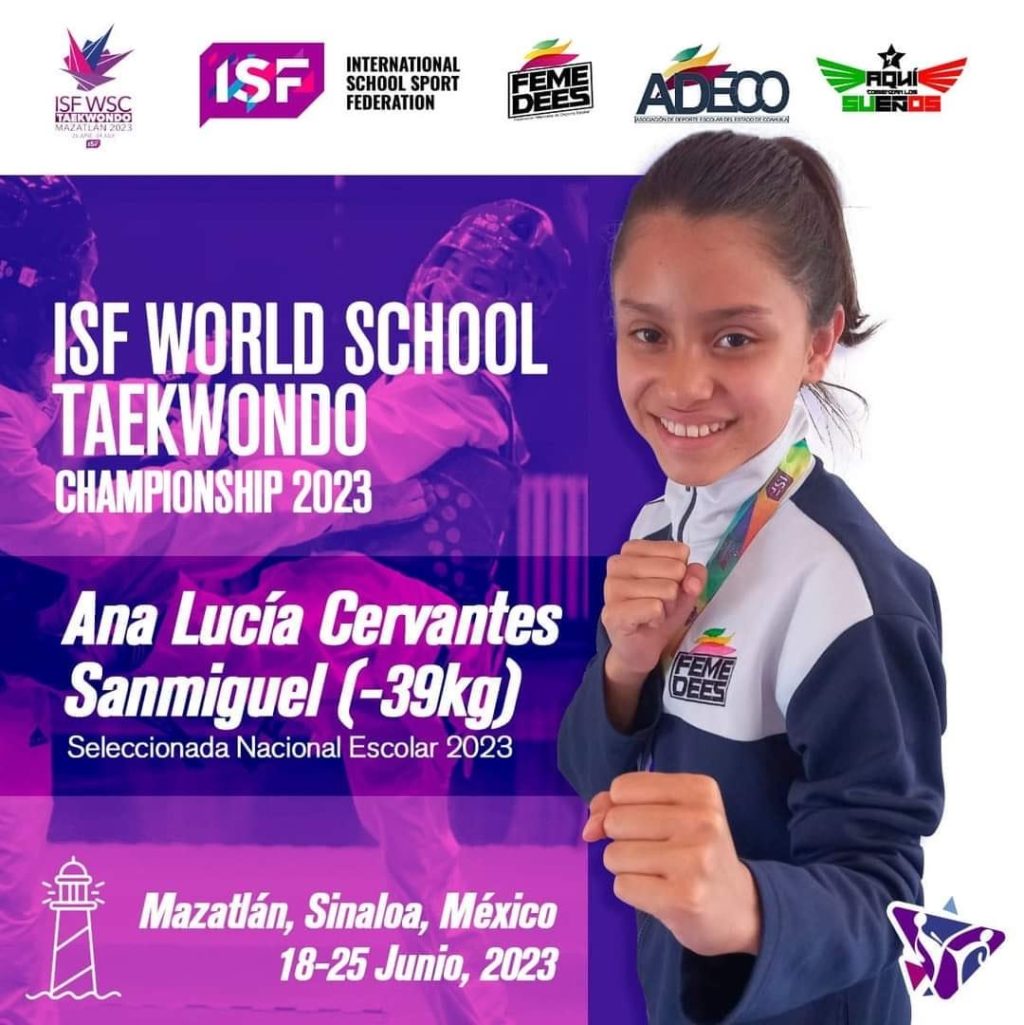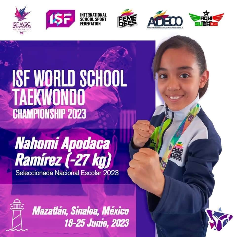 Naomi Apocada Ramírez, Ana Lucía Cervantes Sanmiguel, Andy Leonel Mendoza Bezares, Ángel Alan Salas Olivares, Oliver Daniel Cruz García e Iker Mateo Mata Gómez representarán a México en el Campeonato Mundial de Taekwondo Escolar, que se llevará a cabo en Mazatlán, Sinaloa, del 18 al 25 de junio.
