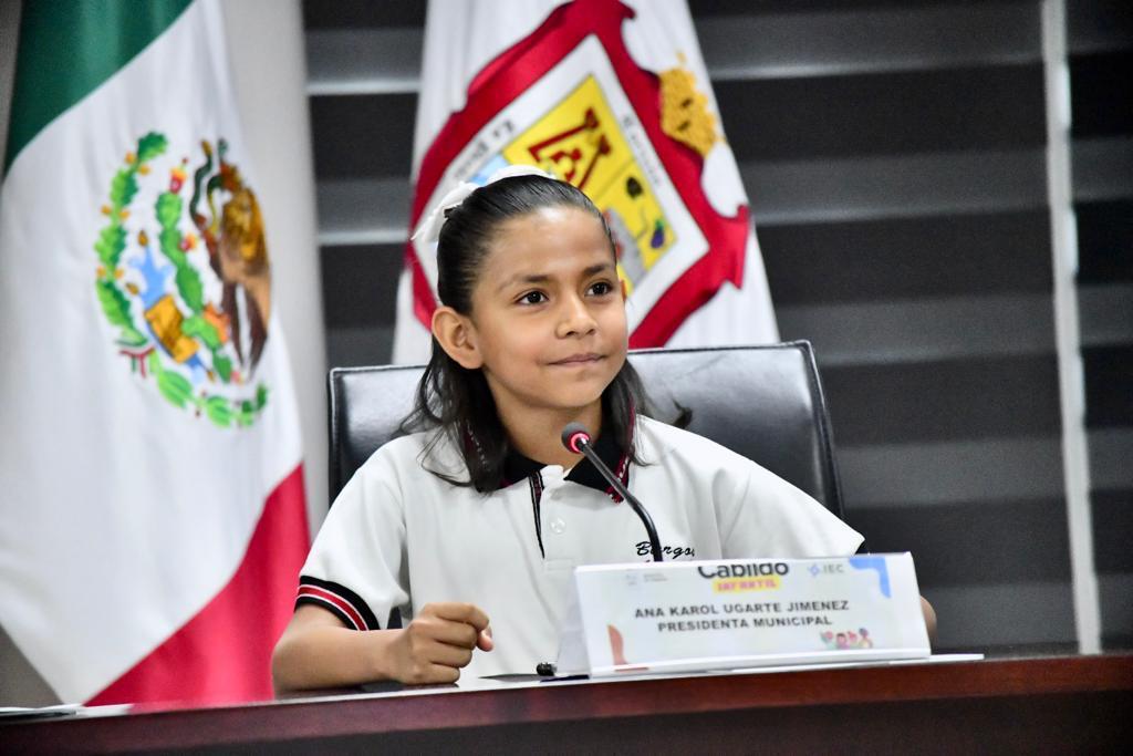 Los integrantes del Cabildo Infantil 2023 son: Alcaldesa Ana Karol Ugarte Jiménez; Secretario, Mateo Silva Ríos; Primera Regidora, Sarah Vargas Polendo; Segundo Regidor, Liam Alesandro Morales Negrete; Tercera Regidora, Alicia Marisol García García; Cuarto Regidor, Irvin Daniel Luna López; Quinta Regidora, Juliana Hernández Barraza, Sexto Regidor, Sergio Armando Aguilera González.
