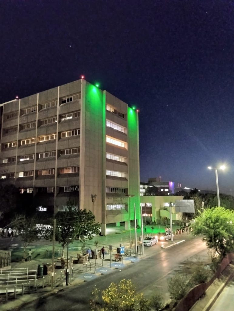 El Instituto Mexicano del Seguro Social en Coahuila iluminó en color verde algunos de sus edificios, como parte de las acciones para conmemorar el Día de la Niña y del Niño y de esta manera refrendar su compromiso con la salud de la población infantil.
