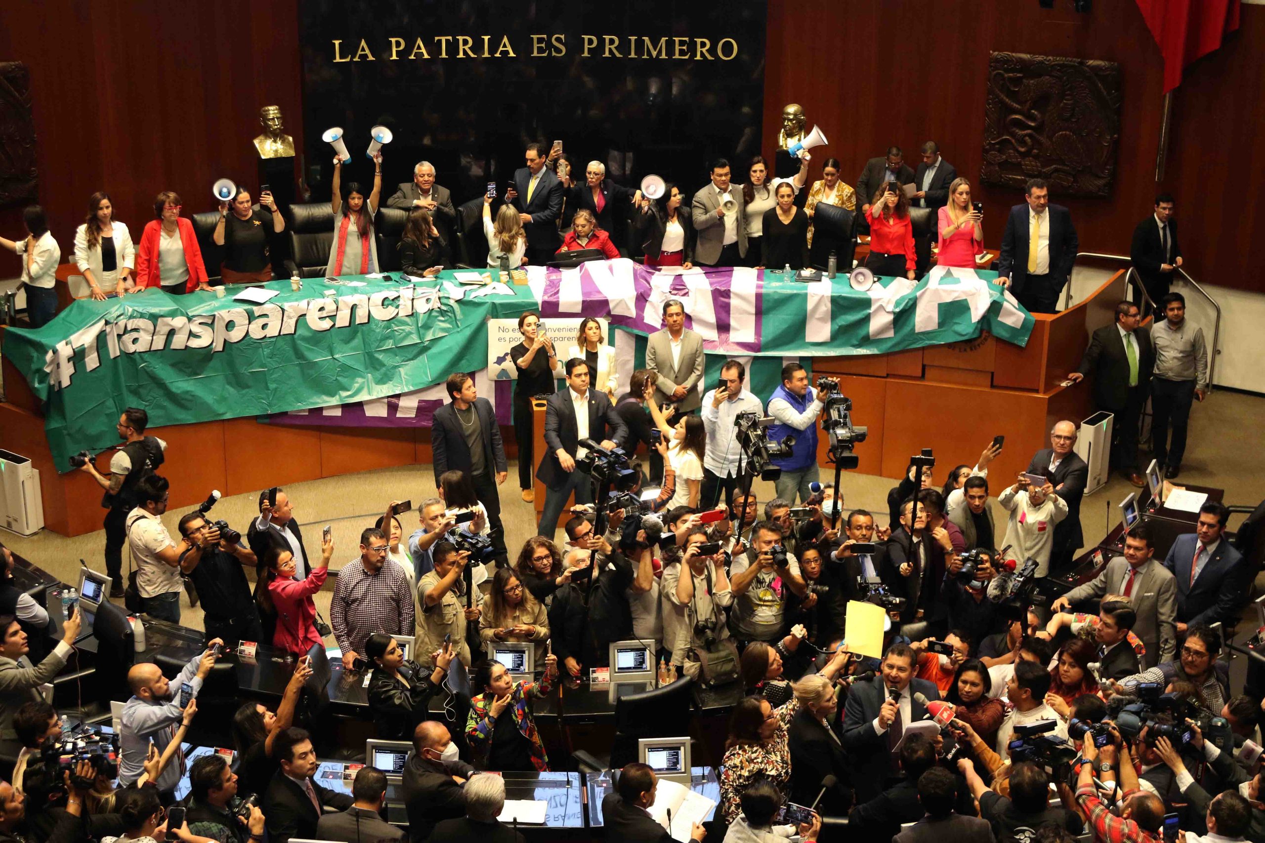 En medio de sirenas y consignas de senadores del bloque de contención, inició la sesión con cuatro horas de retraso ante la falta de quórum, legisladores de Morena empezaron a subir a la tribuna también.