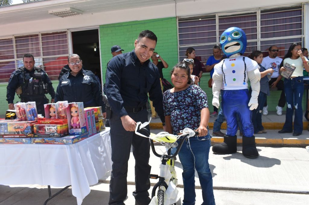 En medio de la algarabía de los asistentes, los elementos policiales realizaron también el festejo por el “Día del Niño” con la entrega de bicicletas, patinetas, juegos de mesa, y otra variedad de juguetes para hombres y mujeres.