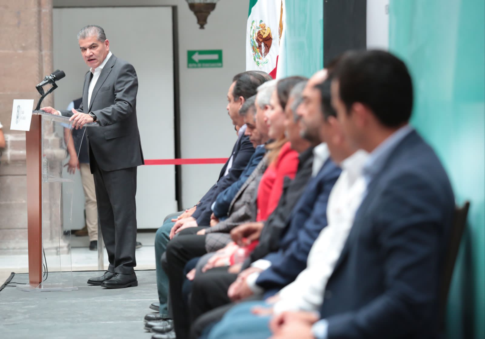 En esta ceremonia acompañaron al Gobernador en el presídium, además, Eduardo Olmos Castro, diputado Presidente de la Junta de Gobierno del Congreso Local; Miguel Felipe Mery Ayup, magistrado Presidente del Poder Judicial; los diputados federales Rodrigo Fuentes Ávila y Jaime Bueno Zertuche; Fernando de las Fuentes Hernández, Secretario de Gobierno; José María Fraustro Siller, Alcalde de Saltillo, y Éder Alejandro López, Secretario General de la Unión de Organismos Empresariales, Coahuila Sureste. (EL HERALDO)