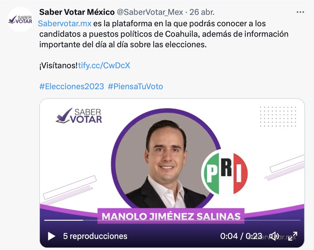 Ciudad de México.- Un grupo de observadores electorales presentaron la plataforma Saber Votar, en la que se ofrecen 15 fichas de análisis de plataformas electorales y 110 fichas de candidatos que serán elegidos el próximo 4 de junio en los estados de México y Coahuila, a fin de que la ciudadanía esté mejor informada sobre las propuestas.