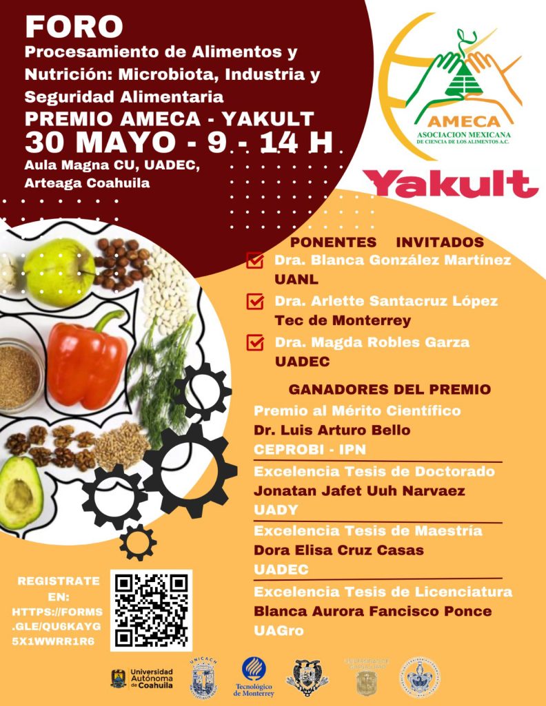 Será sede UA de C del Foro “Procesamiento de alimentos y nutrición: microbiota, industria y seguridad alimentaria” Premio AMECA-YAKULT
