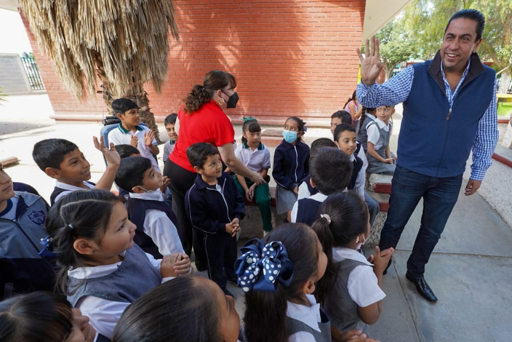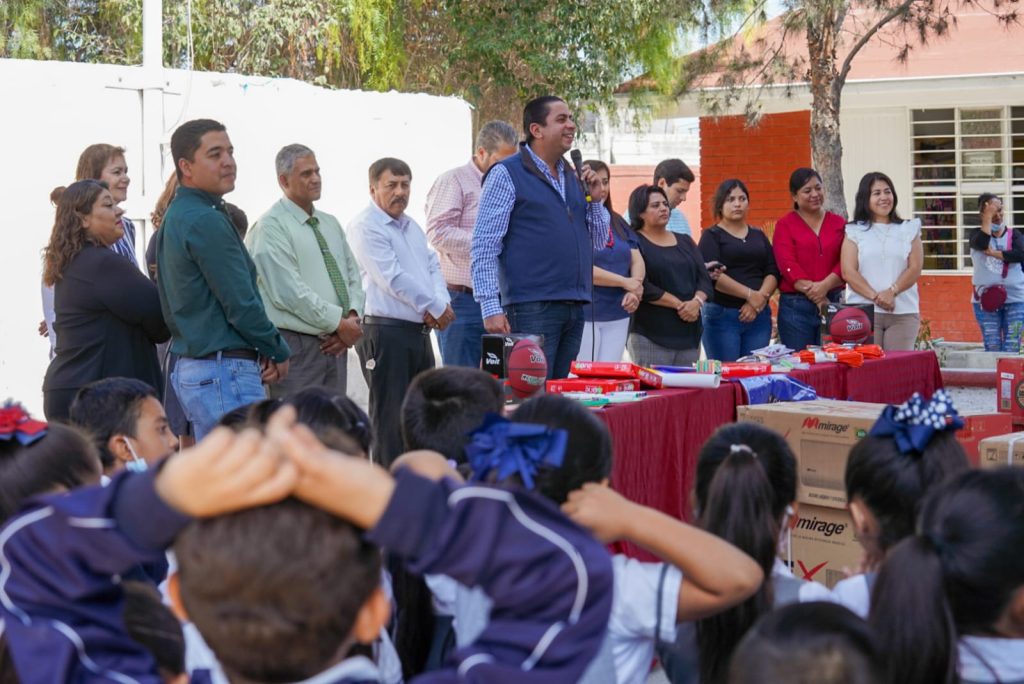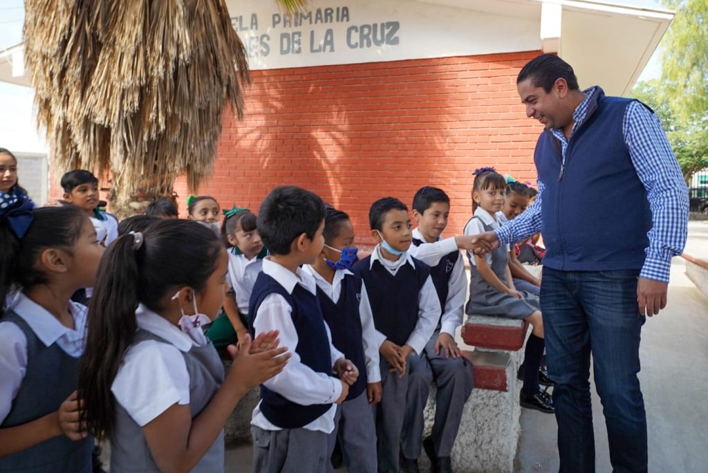 El alcalde de Ramos Arizpe Chema Morales Padilla visitó la Escuela Primaria “Sor Juana Inés de la Cruz”, en la colonia Analco, para supervisar la entrega de material didáctico, deportivo, de oficina y equipo de aire acondicionado.