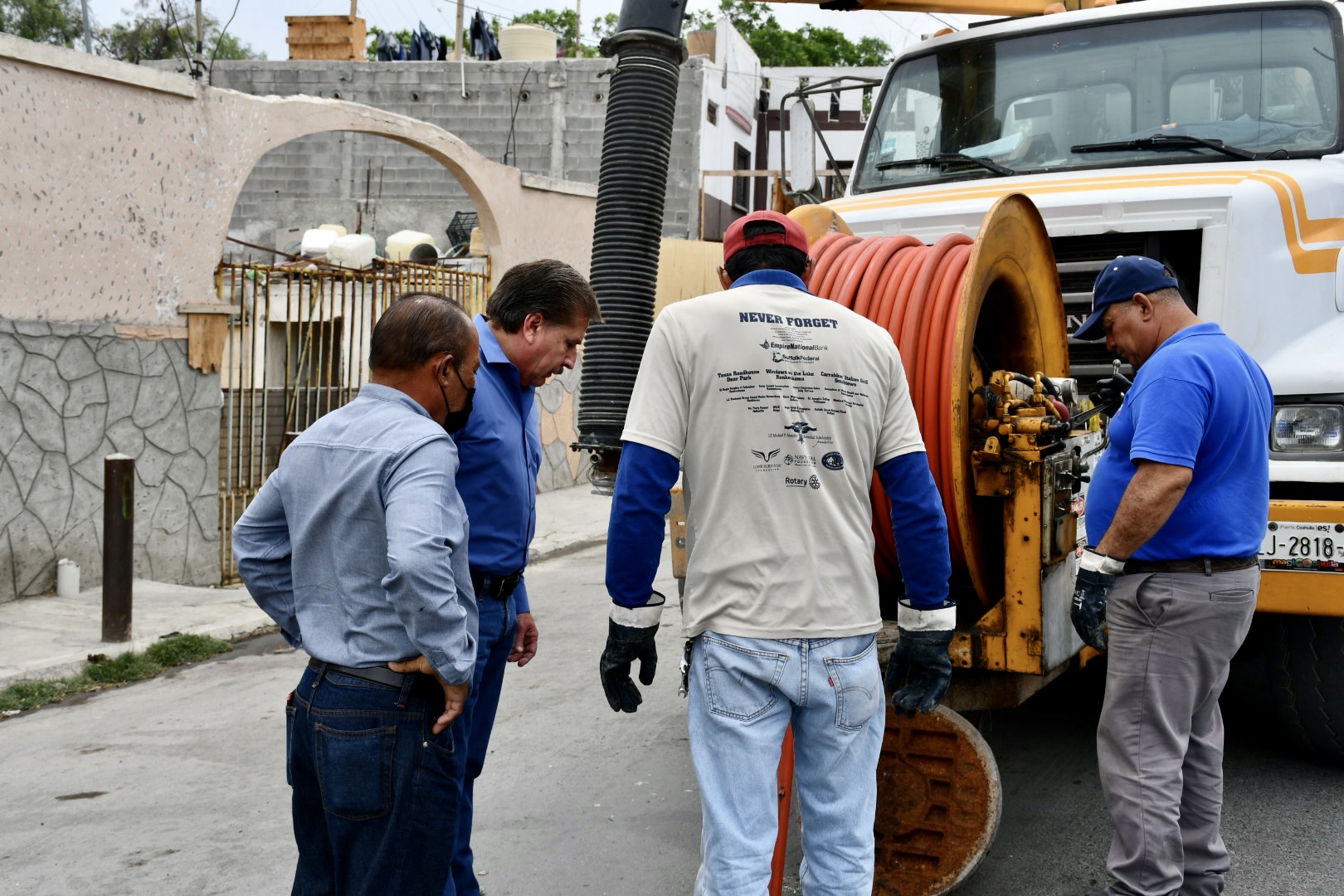 “Acudimos a un problema de obstrucción en la red de drenaje, esto es generado por el azolve, algunas piedras y basura. De inmediato acudimos con el equipo especializado para destapar el alcantarillado y drenajes. La limpieza continuará durante las próximas 48 horas para dar un flujo adecuado en el drenaje. Esto que se realiza, es parte de las acciones de mantenimiento que seguimos implementando a diario en distintos sectores de la ciudad, así como los reportes de los vecinos” declaró Valdés Cuellar.