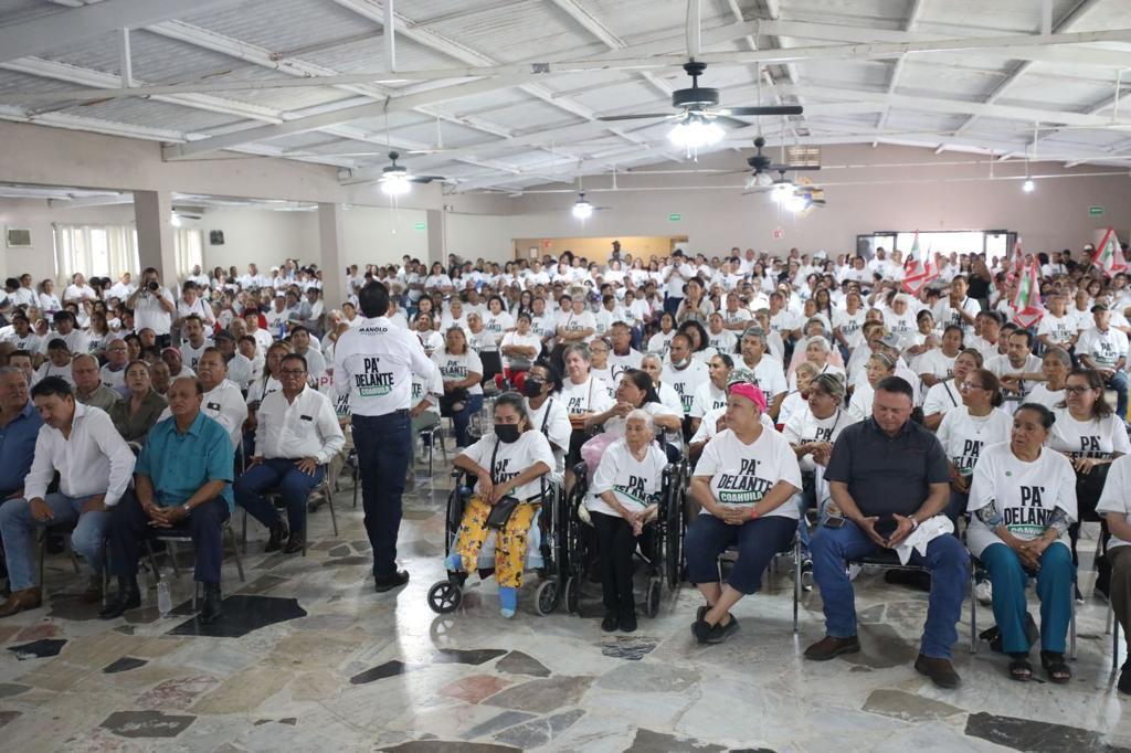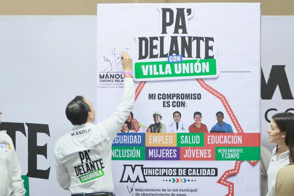 San Juan de Sabinas.- Durante gira por las regiones Cinco Manantiales y Carbonífera, el candidato a gobernador de la Alianza Ciudadana por la Seguridad, Manolo Jiménez Salinas, destacó que con educación y valores de la mano de las mujeres y los jóvenes Coahuila va pa’delante.