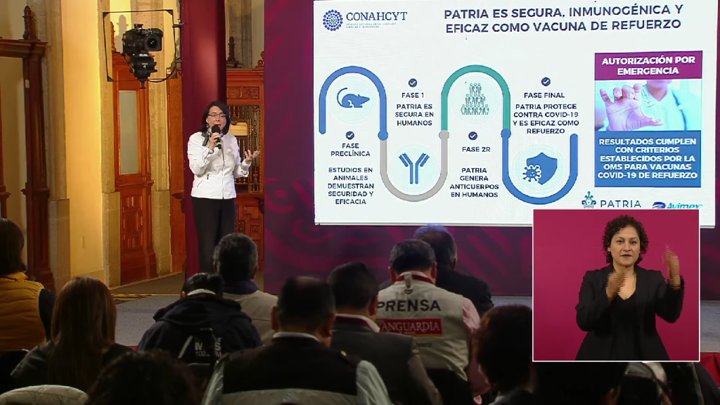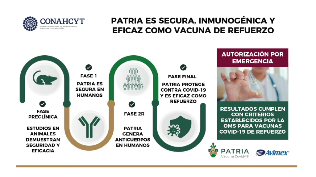 Ciudad de México.- A más de tres años de la llegada de la pandemia de Covid-19 y en medio del análisis del gobierno federal para declarar el fin de la emergencia sanitaria, María Elena Álvarez-Buylla, directora general del Consejo Nacional de Ciencia y Tecnología (Conacyt), informó que la vacuna “Patria” desarrollada por ese organismo en colaboración con los laboratorios Avimex, ya está lista y los resultados de la fase final muestran que es eficaz como vacuna de refuerzo contra el virus SARS-CoV-2.