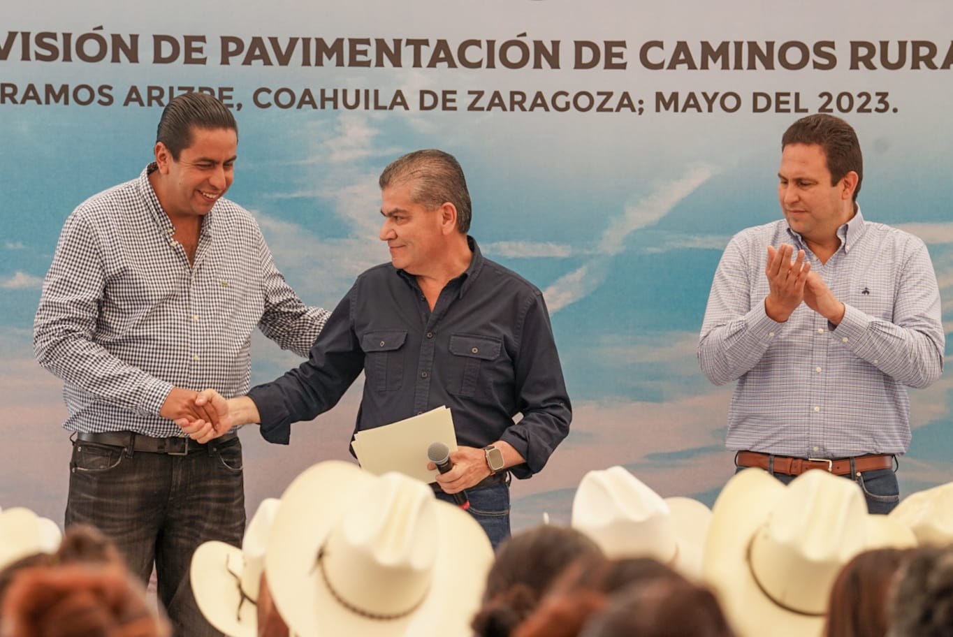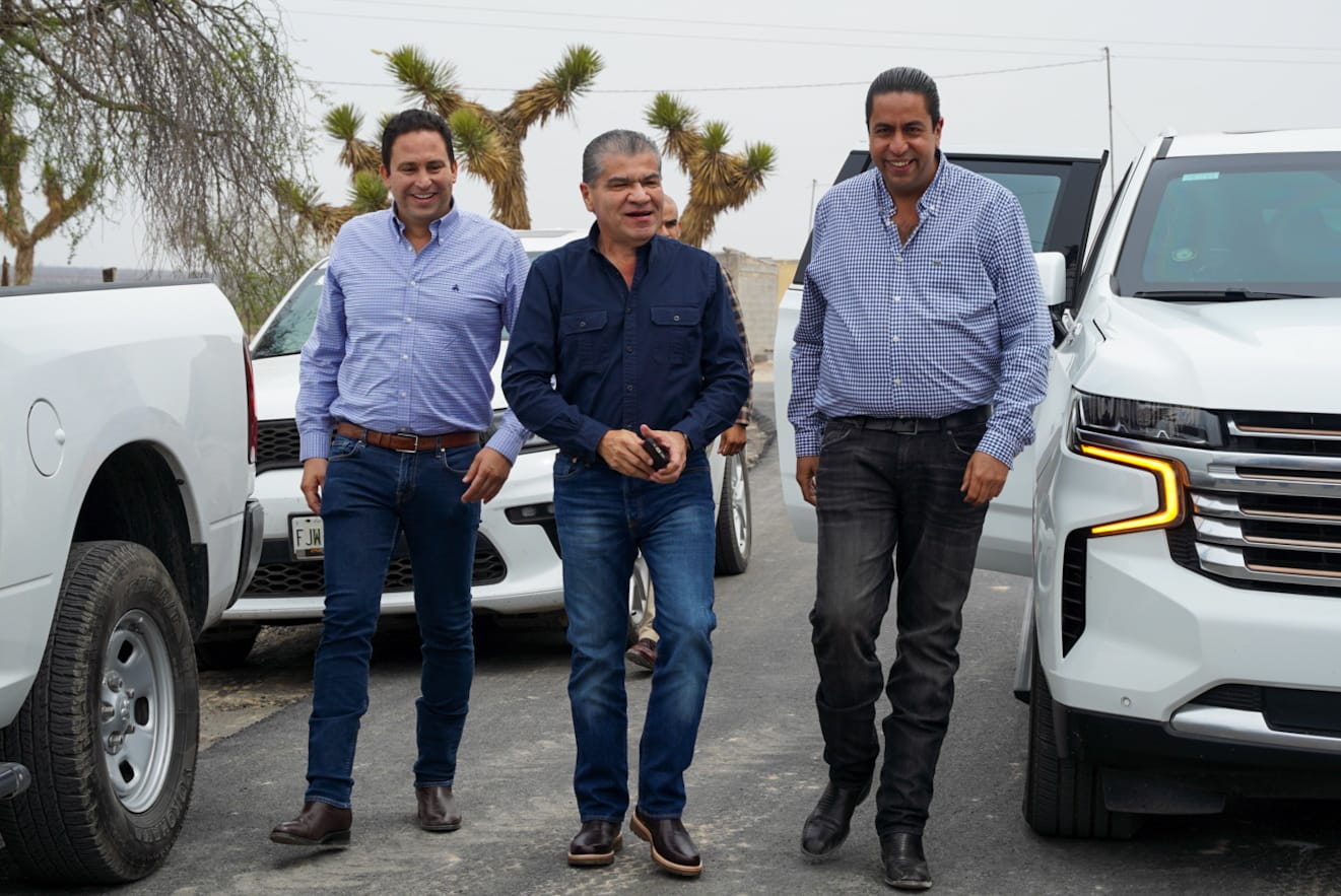 El edil acompañó al gobernador Miguel Ángel Riquelme Solís a la supervisión de rehabilitación de más de 64 mil metros cuadrados de caminos rurales que incluyen a los ejidos Santa Cruz, Higueras, Ojo Caliente, San Gregorio y La Azufrosa.