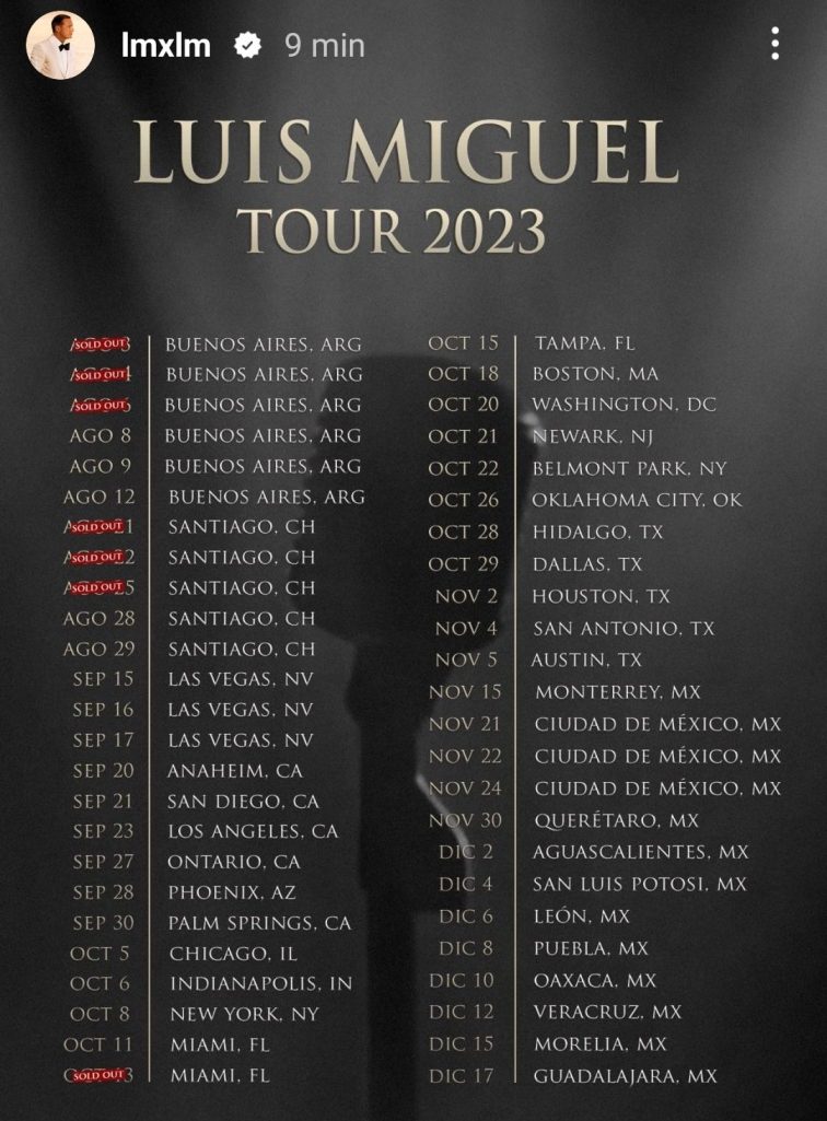A través de sus redes, Luis Miguel dio a conocer las fechas sould out, y anunció nuevos shows debido a la demanda. Tres nuevos conciertos en Argentina: 8, 9 y 12 de agosto; en Miami también hay nueva fecha, octubre 11.