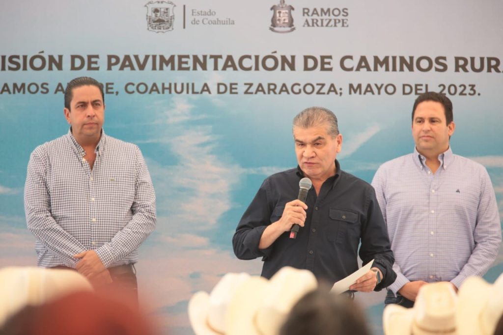 Ramos Arizpe.- El gobernador Miguel Ángel Riquelme Solís acompañó al alcalde José María Morales Padilla en la supervisión de pavimentación de caminos rurales en este municipio, donde reiteró la importancia que tienen para sus administraciones las comunidades ejidales.