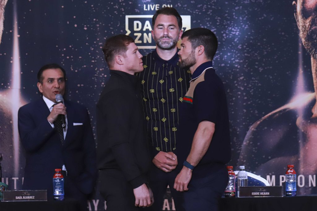 Álvarez marcó 167.5 libras y 168 libras el británico, es decir, ya están listos para subir al ring para disputar el combate donde están en juego los títulos de los supermedianos del CMB, AMB, OMB y FIB que le pertenecen al tapatío.