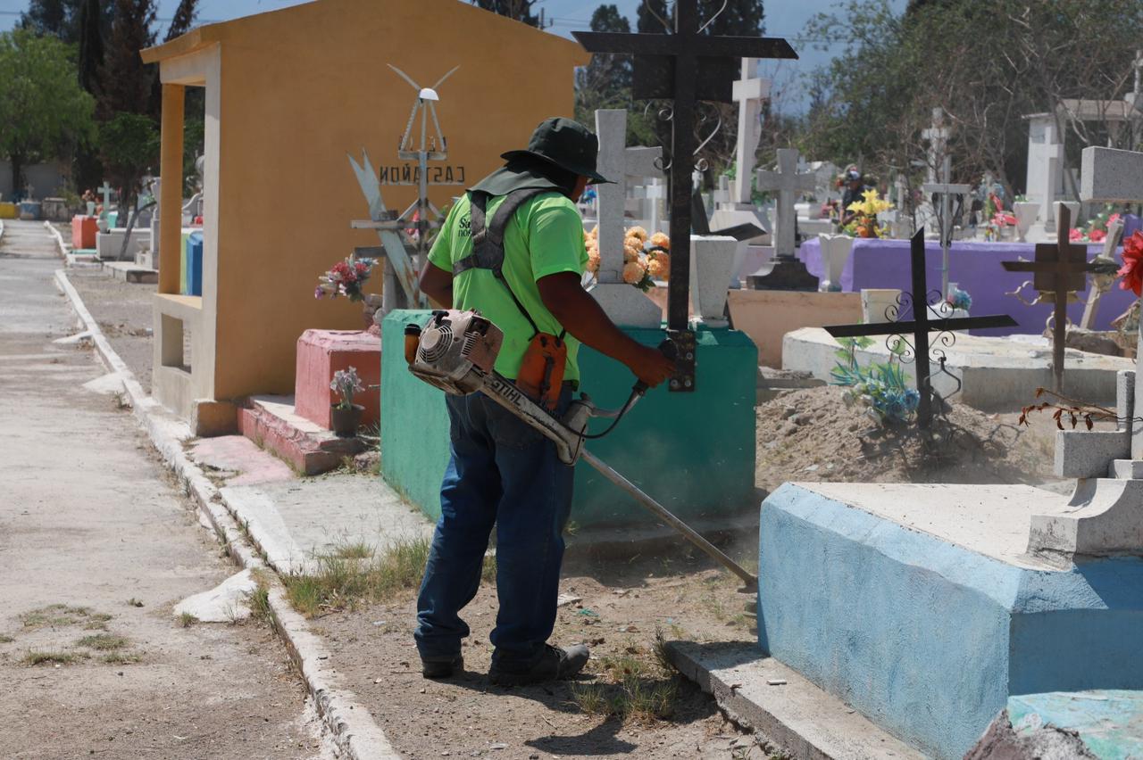 Previo al Día de las Madres, personal del Ayuntamiento de Saltillo llevó a cabo acciones de limpieza y mantenimiento en los diferentes cementerios municipales a fin de que estén condiciones de seguridad e higiene, como parte de las medidas de protección civil a la población.