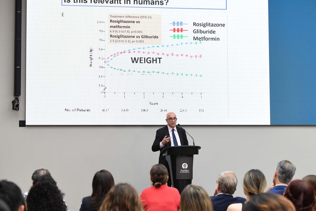 Durante el segundo día de actividades también participaron con conferencias, Douglas L. Mann, quien realiza investigación sobre la base molecular y celular de la insuficiencia cardiaca; y Antonio Vidal-Puig, profesor de nutrición molecular y metabolismo de la Universidad de Cambridge, quien abordó el tema de información molecular sobre obesidad.