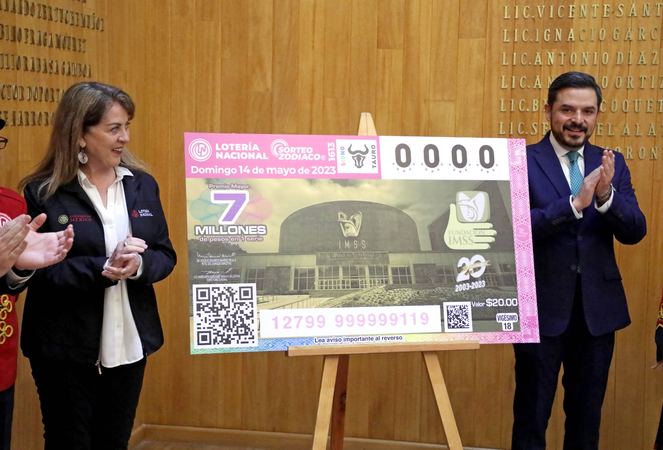 Ciudad de México.- En el marco por el 20° Aniversario de la Fundación IMSS, la Lotería Nacional (Lotenal) presentó el billete del Sorteo Zodiaco No. 1613 para enaltecer el trabajo de la asociación civil enfocada en apoyar la investigación de la salud, la educación de su personal y el desarrollo de proyectos sociales a favor de derechohabientes y trabajadores del Instituto Mexicano del Seguro Social (IMSS).