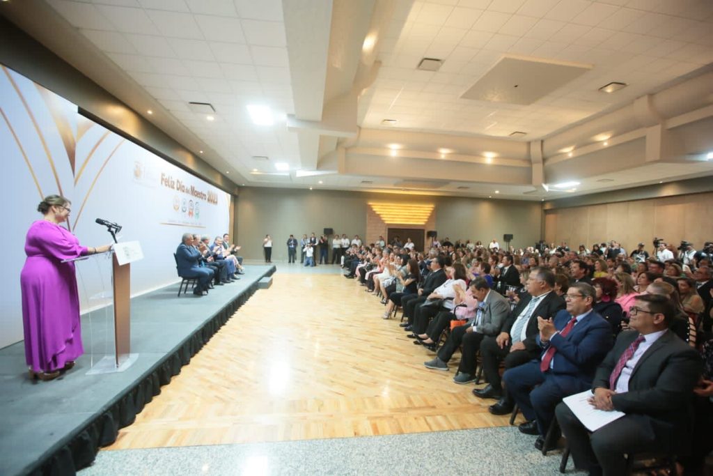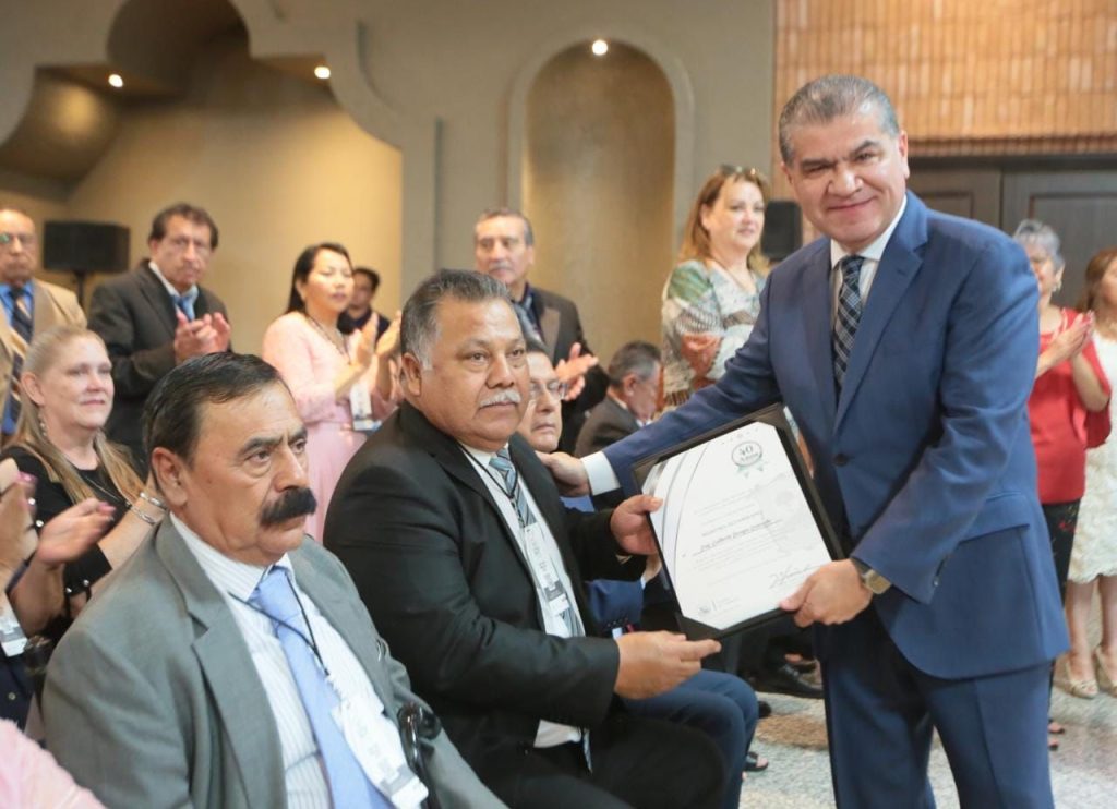Con motivo de la próxima celebración del Día del Maestro, el gobernador Miguel Ángel Riquelme Solís acompañó a integrantes de la Sección 38 en la ceremonia donde se reconoció la trayectoria de maestras y maestros que cumplen 30 o 40 años de servicio, o que realizan una labor relevante dentro de la comunidad educativa.