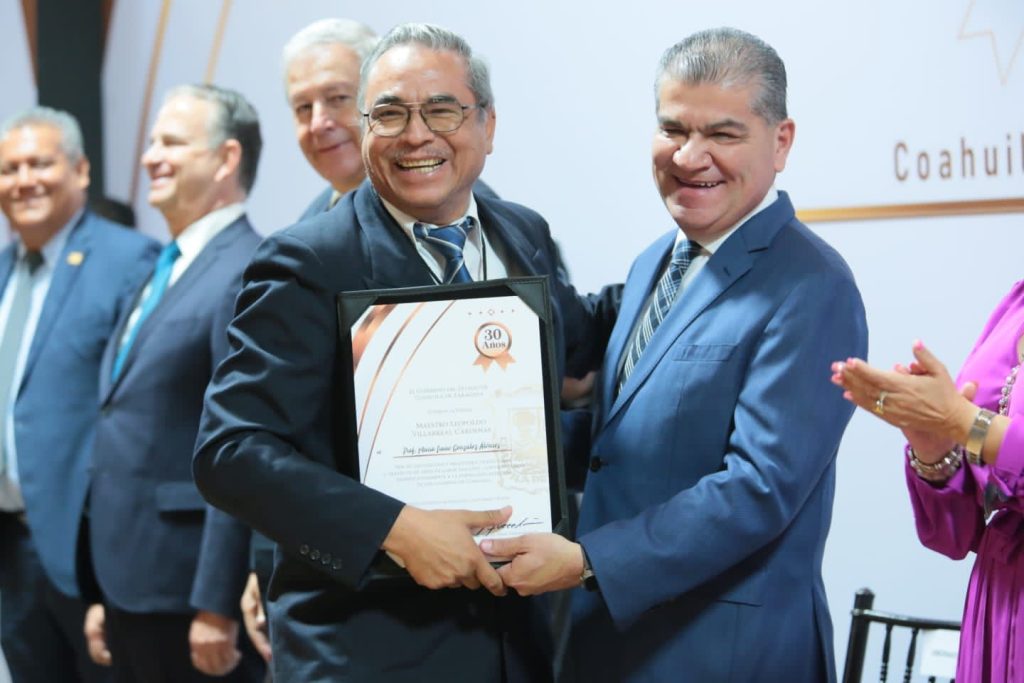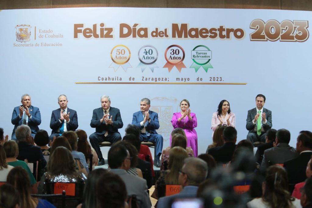 “Desde aquí, reitero mi más amplia y mayor felicitación a todas las maestras y maestros de Coahuila por su esfuerzo, desempeño profesional y el gran amor a nuestra tierra, valores con los cuales día tras día están modelando el Coahuila que desea y merece nuestra sociedad”, puntualizó el gobernador Miguel Riquelme.