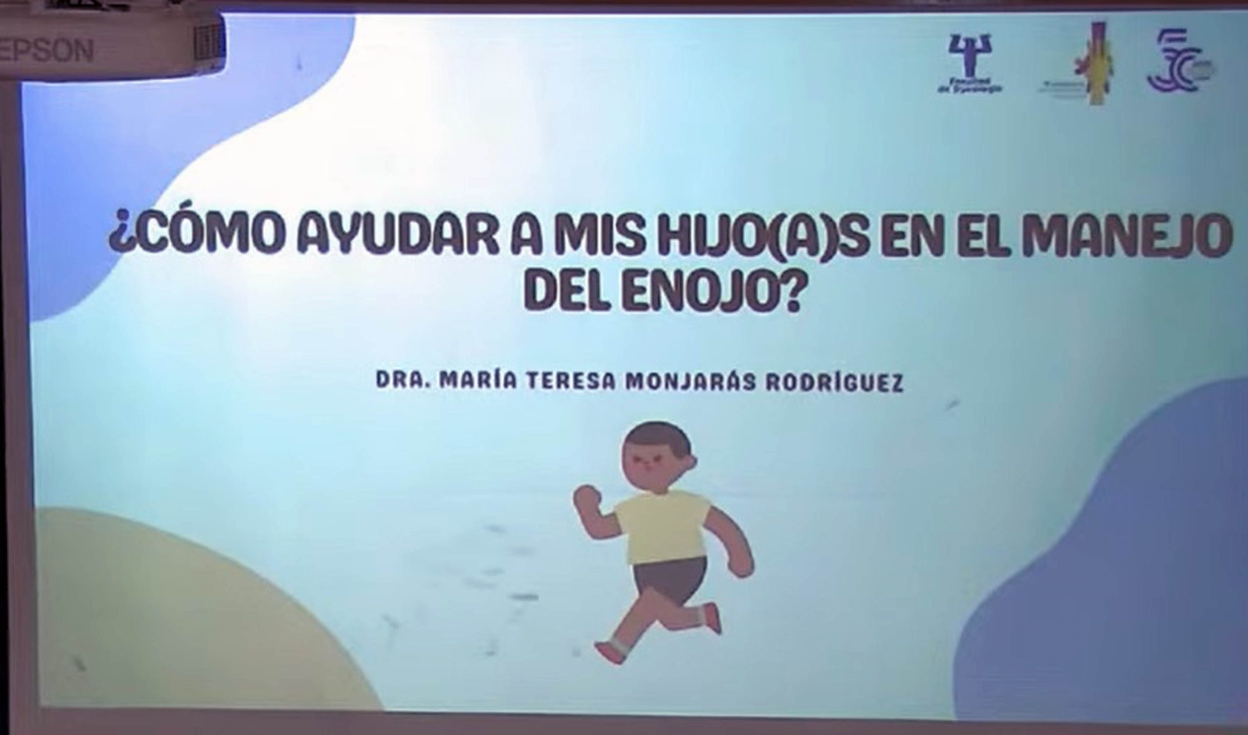 En la conferencia ¿Cómo ayudar a mis hijos en el manejo del enojo?, dentro del ciclo UNAMirada desde la Psicología, la universitaria recomendó a madres, padres y docentes observar cómo expresan su molestia ellos mismos (gritando, respirando profundo, etcétera) porque los menores aprenden de lo que ven. “De nada sirve que si mi hijo se enoja yo le dé una cátedra de por qué no debe gritar o pegar, si cuando él hace una travesura yo respondo de la misma manera”.