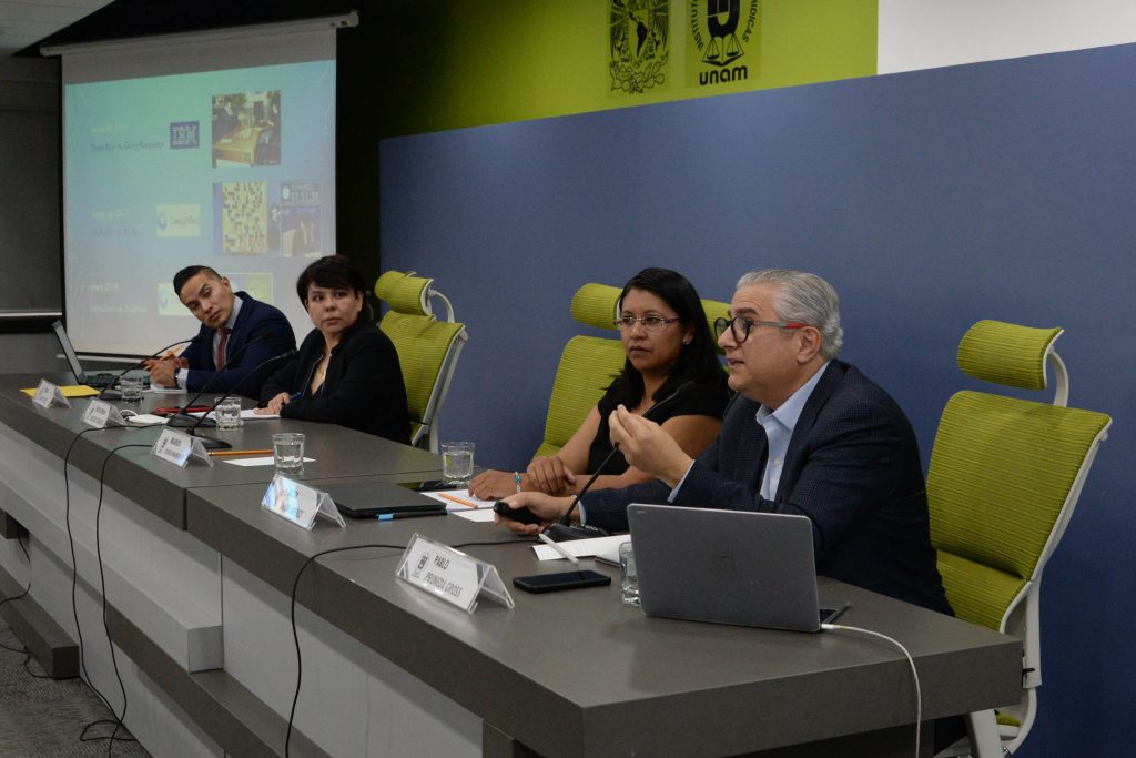 En la actividad académica estuvieron también: Israel Santos Flores y Mauricio Padrón Innamorato, investigador y secretario académico del IIJ, respectivamente; Alicia Edith Trejo Jiménez, doctoranda del Instituto, y María Cristina Múzquiz Fragoso, directora de Docencia en Tecnologías de Información y Comunicación de la Dirección General de Cómputo y de Tecnologías de Información y Comunicación. (UNAM)