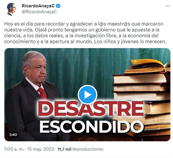 “¿Tú crees que la niñez mexicana debe ser adoctrinada de esta manera? ¿No prefieres que tus hijos aprendan sobre ciencia y tecnología para tener un buen trabajo? ¿Que en lugar de sentirse víctimas históricas de la “colonización” y el “dominio” se sientan mexicanos ganadores, con conocimientos al nivel de cualquier joven de cualquier parte del mundo?», cuestionó Anaya.