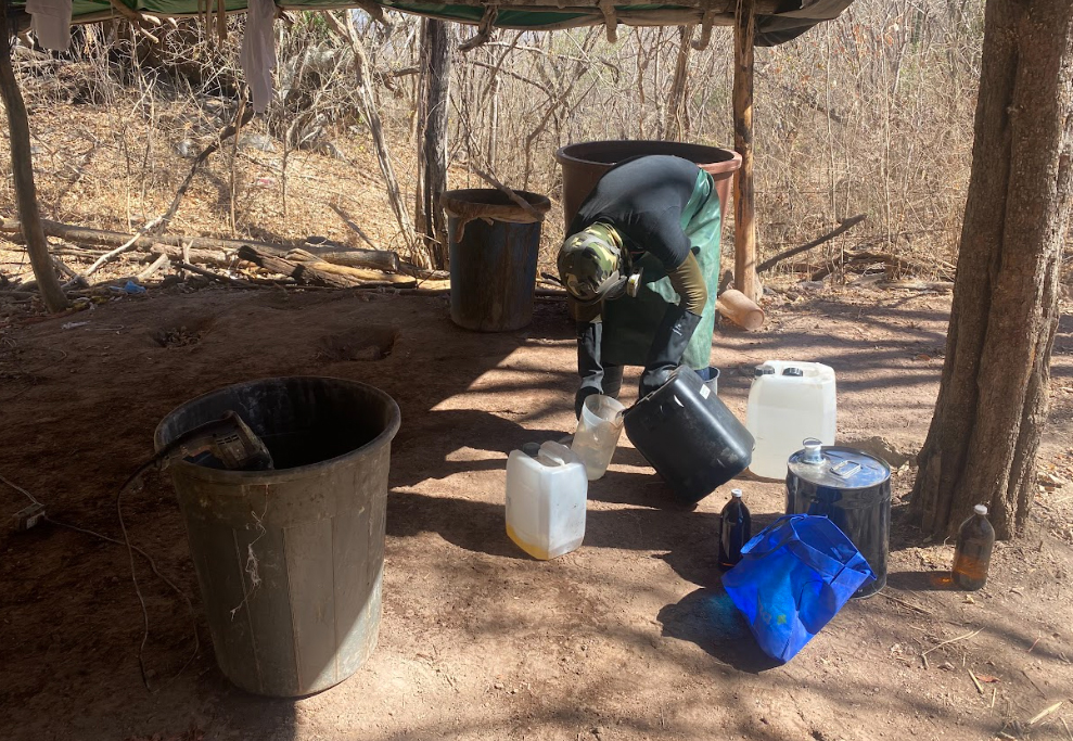 “Aseguramiento de laboratorios clandestinos de metanfetamina del primero al 15 de mayo. Se han asegurado 54 laboratorios clandestinos de metanfetamina, sustancias químicas y material diverso de la forma siguiente: 14.7 toneladas de sustancias químicas, se evitó la producción de más de 213 toneladas de metanfetamina con una afectación económica para la delincuencia organizada de más de 54 mil 484 millones de pesos.