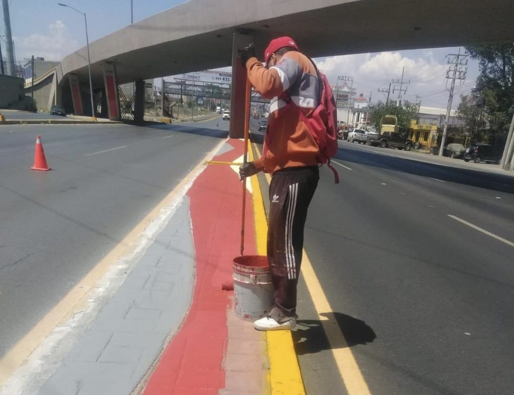 Nicanor Aguirre, responsable del área municipal, indicó que con labores de colocación de pintura en las guarniciones y banqueta del camellón principal se brinda mayor seguridad a los miles de automovilistas que a diario circulan por la zona, además de brindar una mejor imagen urbana.