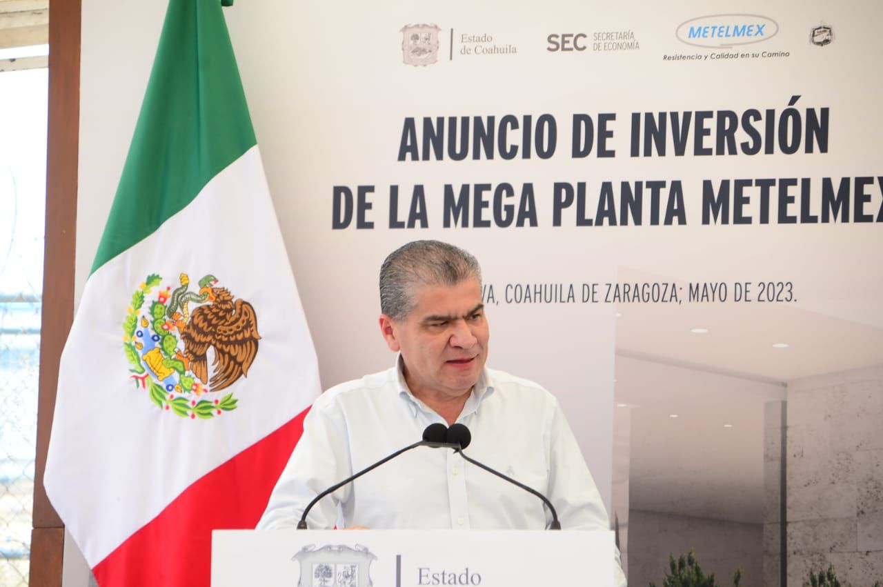Para culminar su gira de trabajo, el Gobernador de Coahuila colocó la primera piedra de la Mega Planta Metelmex, con inversión de alrededor de 100 millones de pesos y se dedicará a la fabricación de productos para la industria pesada, generando de entrada 485 empleos.