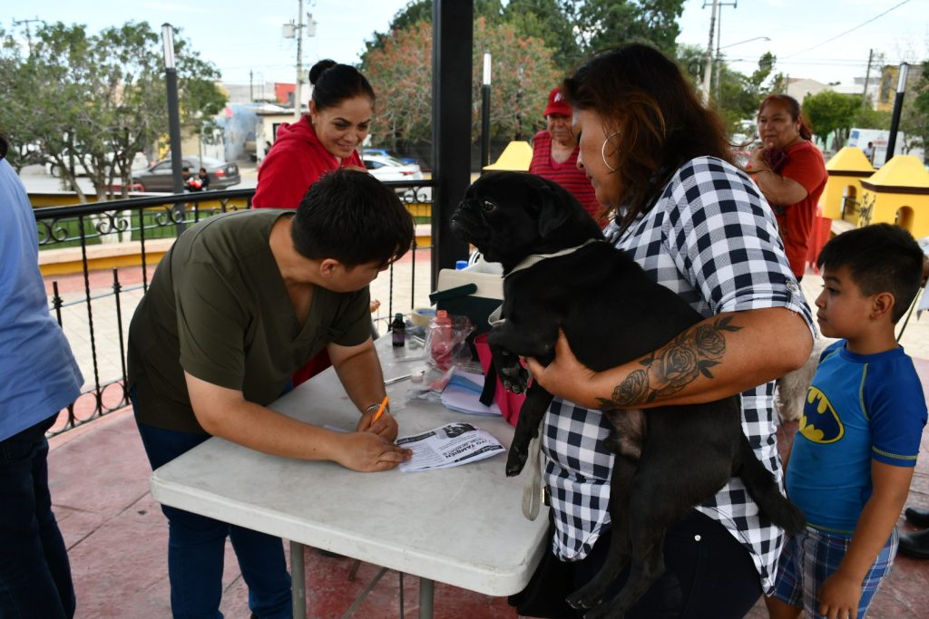 En un horario de 10:00 a 13:00 horas, en la explanada del espacio público, lució con la visita de familias, entre madres, hijos, jóvenes y adultos que acudieron con las autoridades sanitarias municipales para que un total de 495 mascotas recibieran la vacuna antirrábica así como la desparasitación y los cuidados contra la picadura de garrapata.