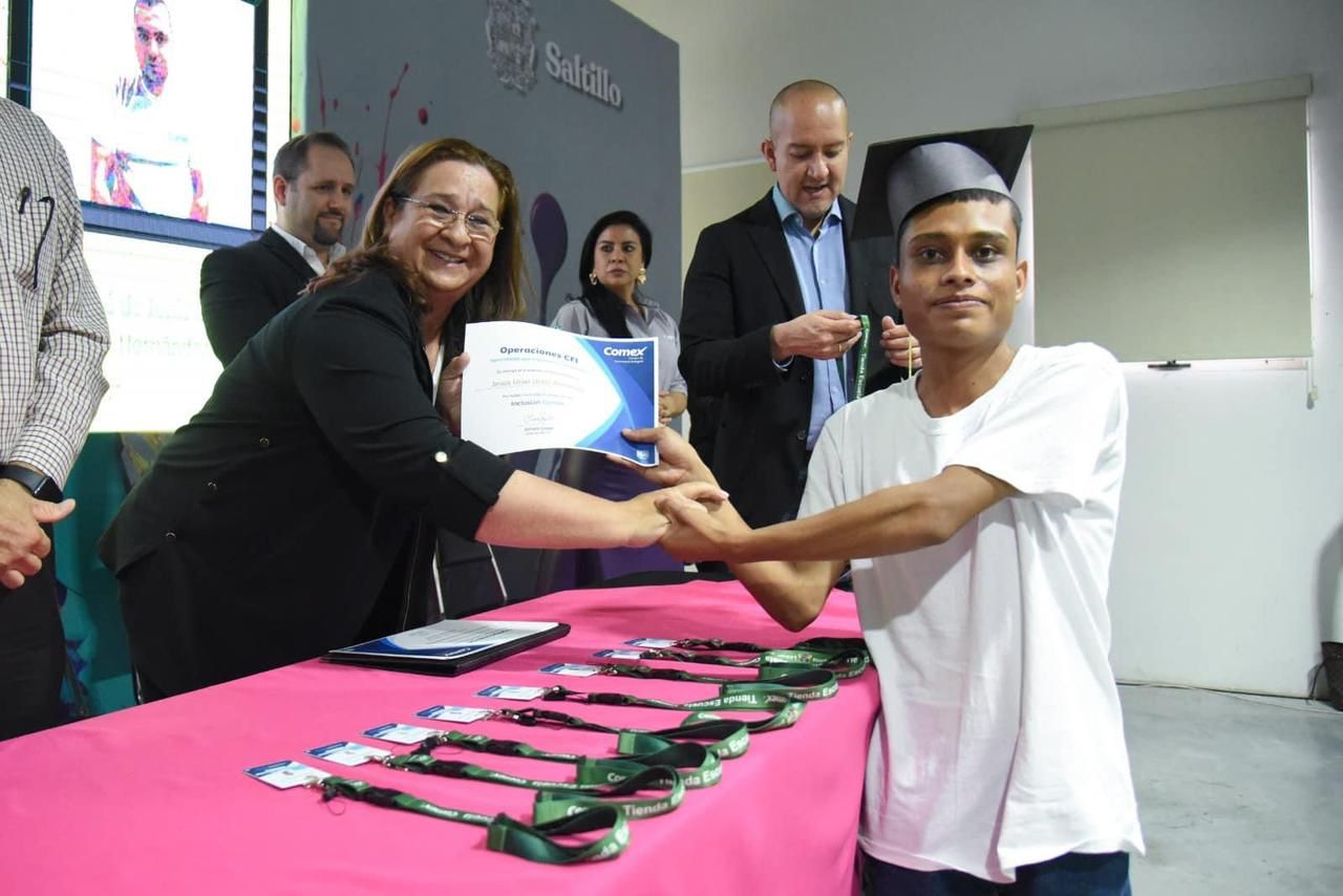 DIF Saltillo, en coordinación con tiendas Comex, celebraron la graduación de 10 jóvenes con discapacidad quienes luego de un curso teórico-práctico fueron contratados por la empresa.