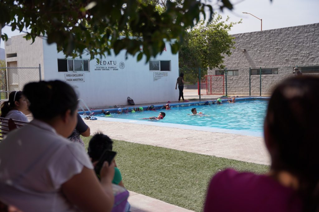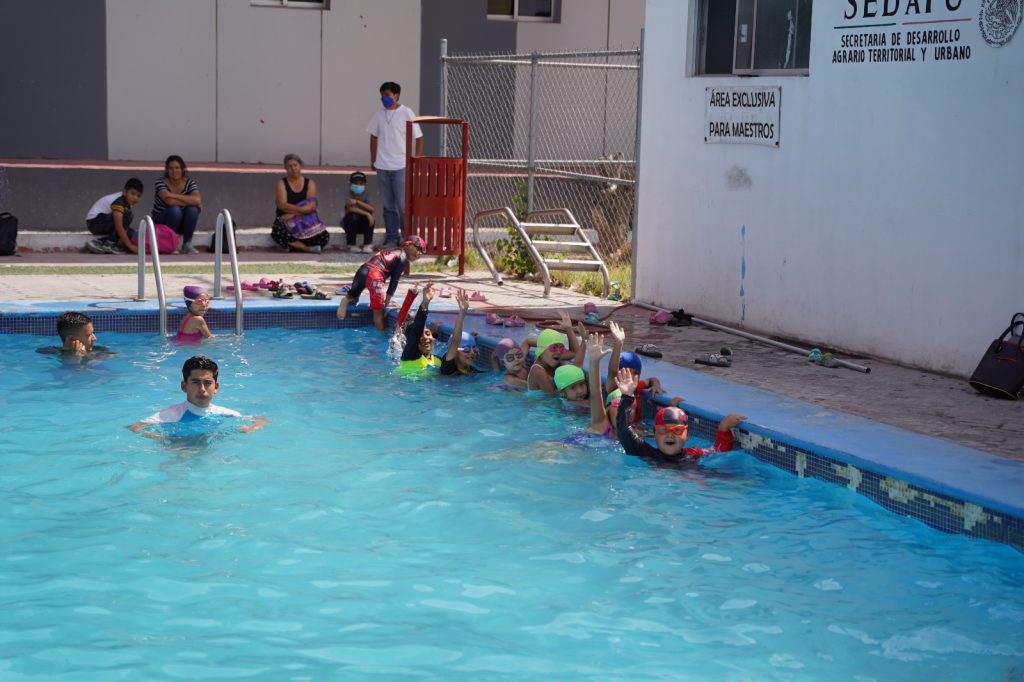 Bajo la coordinación de la entrenadora Mayra Martínez, los cursos de natación se realizan una hora diaria en grupos que asisten lunes, miércoles y jueves, así como martes y jueves.