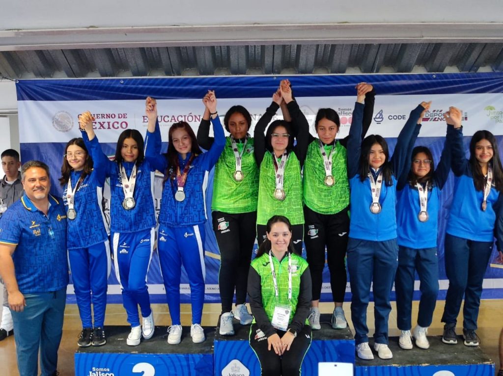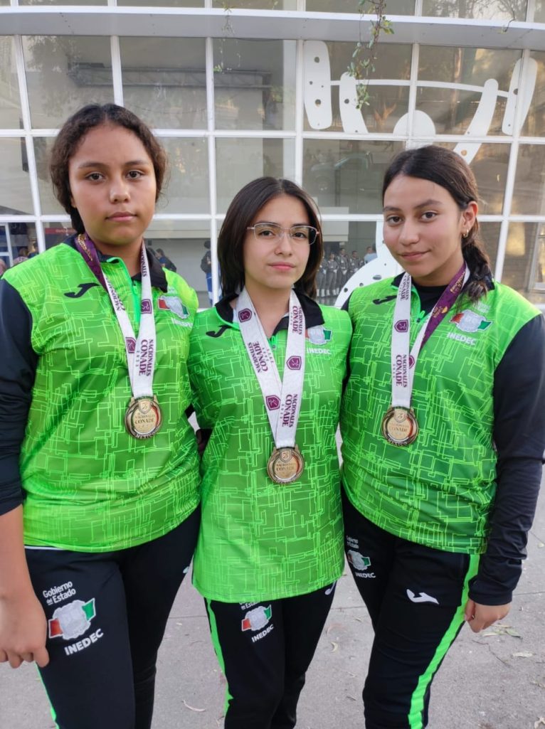 El primer metal dorado de la jornada cayó en la Modalidad Rifle de Aire 10 Metros Femenil por Equipos, donde Abril Ruiz Ornelas, Esmeralda Zapata Medrano y Regina Oyervides Durán lograron subir a la cima del podio dentro de la Categoría 14-15 Años.