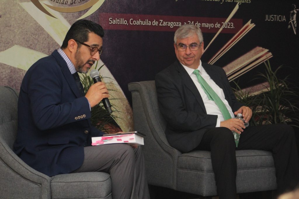 “Miguel, no me resta más que agradecerte, es un gran honor estar aquí, delante de tan distinguida audiencia, el habernos invitado a hacer la presentación aquí y ser el primer libro no jurídico, el primer libro histórico que se presenta en esta sede, habla del gran cariño que tú le tienes a Saltillo, habla de tu compromiso con la historia”. (TEXTO: OMAR SOTO / FOTO: MARIANA FALCÓN)
