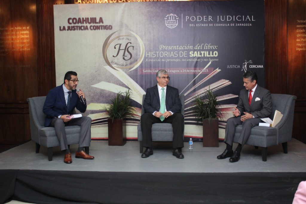 La mañana de este miércoles, en la sede del Palacio de Justicia del Poder Judicial de Coahuila, en Saltillo, se llevó a cabo la presentación del libro “Historias de Saltillo a través de sus personajes, anécdotas y sus lugares”, publicado por el 60 aniversario del Periódico El Heraldo de Saltillo.