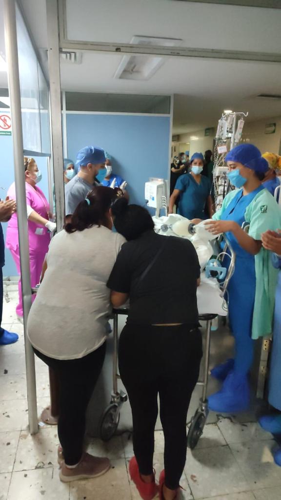 Con una valla de aplausos conformada por el personal del Hospital de Especialidades como gratitud por esta acción altruista, Victoria fue despedida emotivamente por su madre.