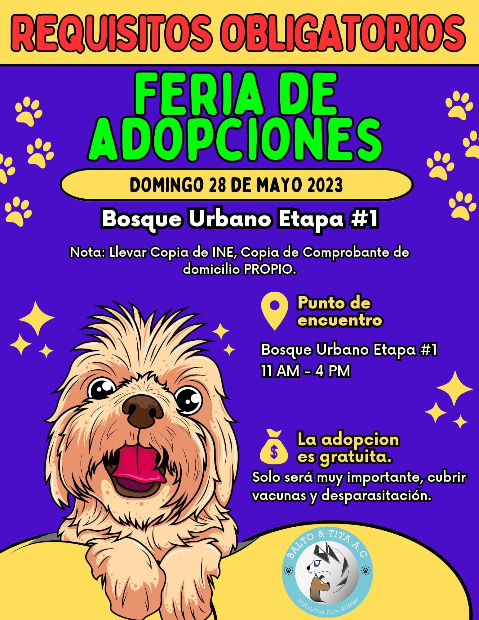 Este domingo 28 de mayo, de 11:00 a 16:00 horas, asociaciones locales llevarán a sus perros y gatos rescatados de las calles a la Etapa 1 del Bosque Urbano Ejército Mexicano en Saltillo, con la esperanza de que obtengan una segunda oportunidad de una vida digna por medio de la Feria de Adopciones organizada por la fundación “Balto y Tita. Huellitas con Rumbo”.