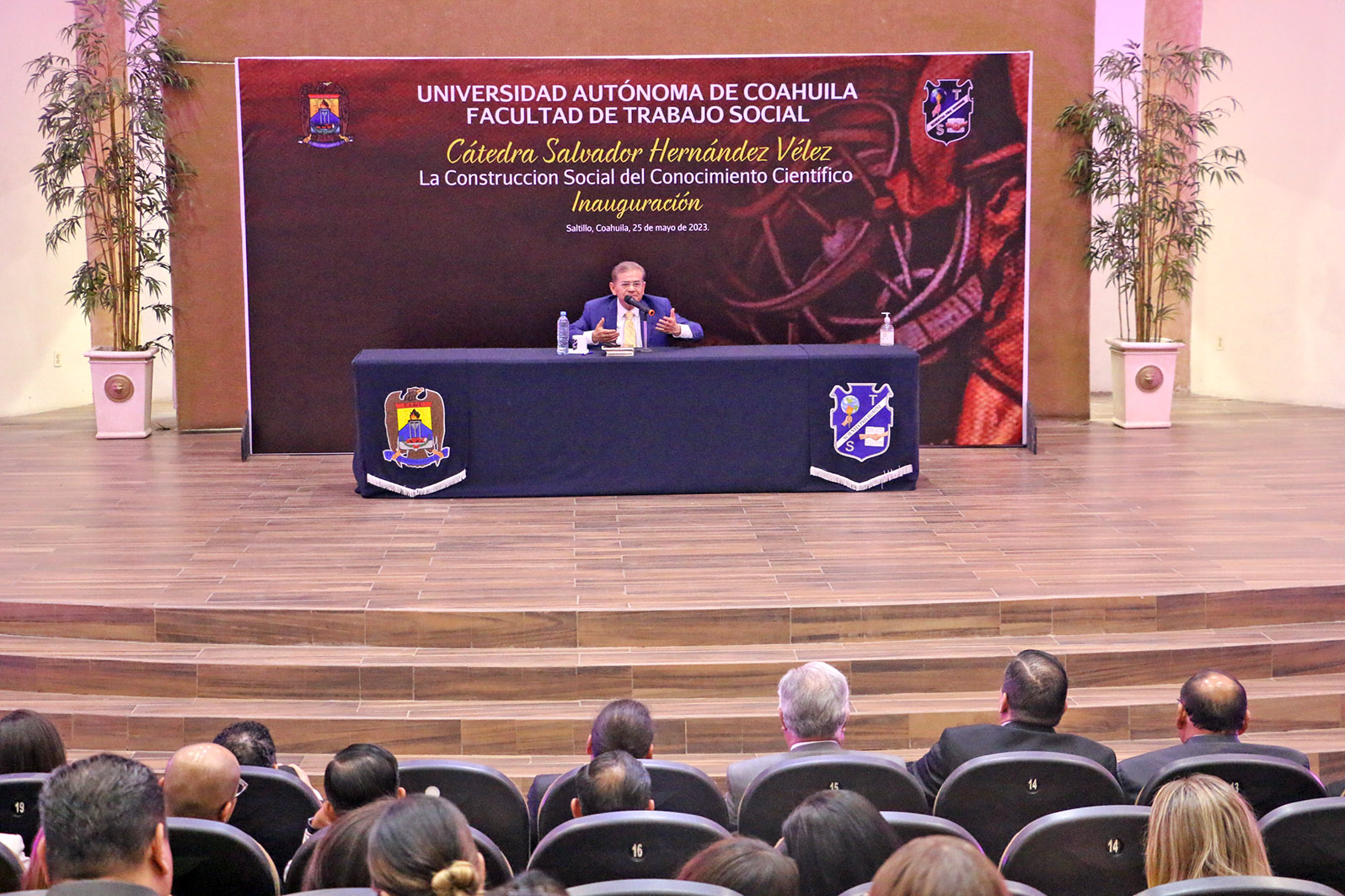 Con el objetivo de instaurar un espacio de reflexión y análisis, la Facultad de Trabajo Social (TS) de la Universidad Autónoma de Coahuila, inauguró este jueves la Cátedra Libre y Permanente Salvador Hernández Vélez con la conferencia “La construcción del Pensamiento Científico” a cargo del Rector de la máxima casa de estudios.