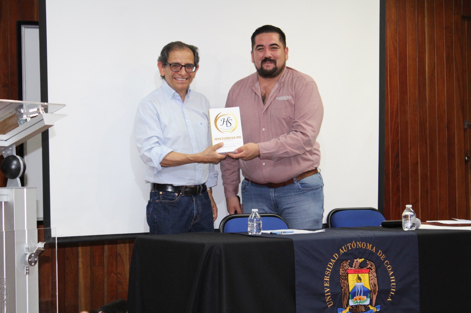 En presencia de alumnos, catedráticos y personal de la institución educativa, el reconocido historiador coahuilense, Carlos Recio Dávila, y el jefe de Información y Multimedia de El Heraldo de Saltillo, José Torres Anguiano, comentaron acerca de la obra editada por Francisco de la Peña, director de este medio.