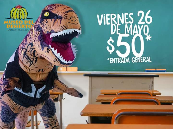 El Museo del Desierto (MUDE) informó que con motivo del Consejo Técnico que tendrá lugar este viernes 26 de mayo en las escuelas del nivel básico, la entrada para el público en general a esa institución será de solamente 50 pesos, para que las familias saltillenses tengan la oportunidad de divertirse en este día de asueto disfrutando los numerosos atractivos de con que cuenta el recinto museográfico.