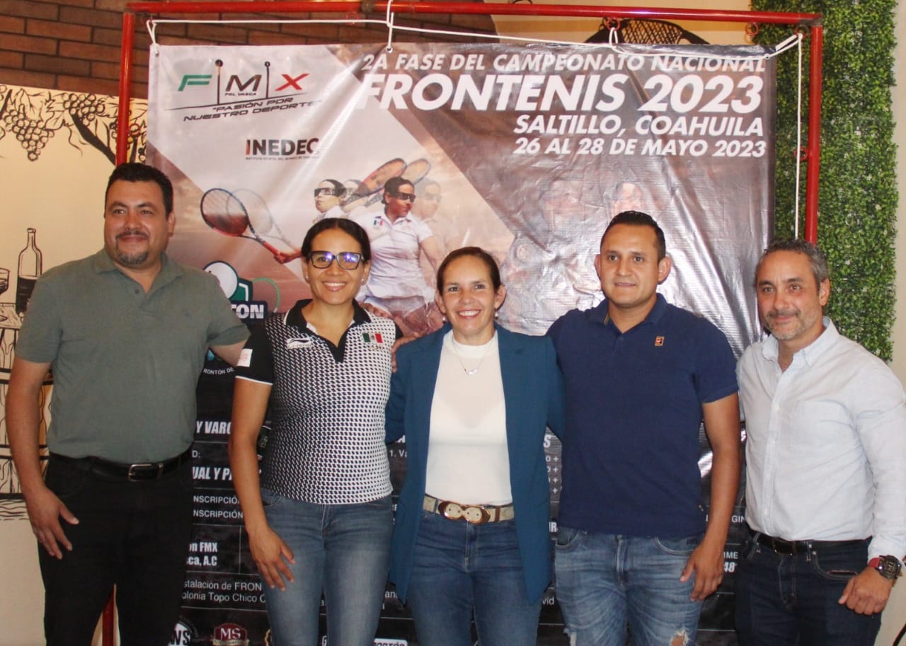 Alina Garza Herrera, titular del Instituto Estatal del Deporte de Coahuila (INEDEC), encabezó la presentación oficial de este evento junto a Valente García, presidente de la Asociación Estatal de Frontenis de Coahuila; Antonio Cepeda Licón, Director del Instituto Municipal del Deporte de Saltillo, y los pelotaris saltillenses Ariana Cepeda de la Mora y Josué Roberto López Rodríguez.