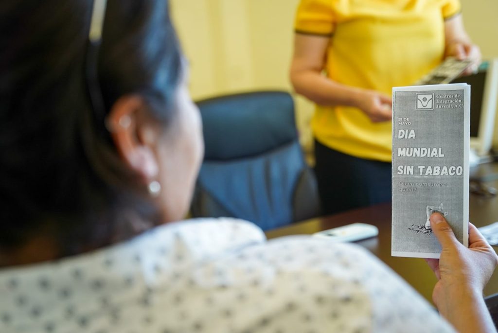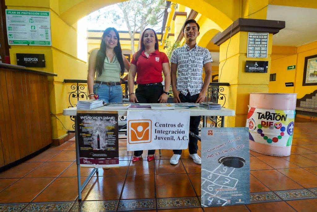 Personal del CIJ visitó las oficinas de la Presidencia Municipal para entregar información a los empleados alertando de las enfermedades derivadas del consumo del tabaco, además del daño que se advierte en el uso de vapeadores.
