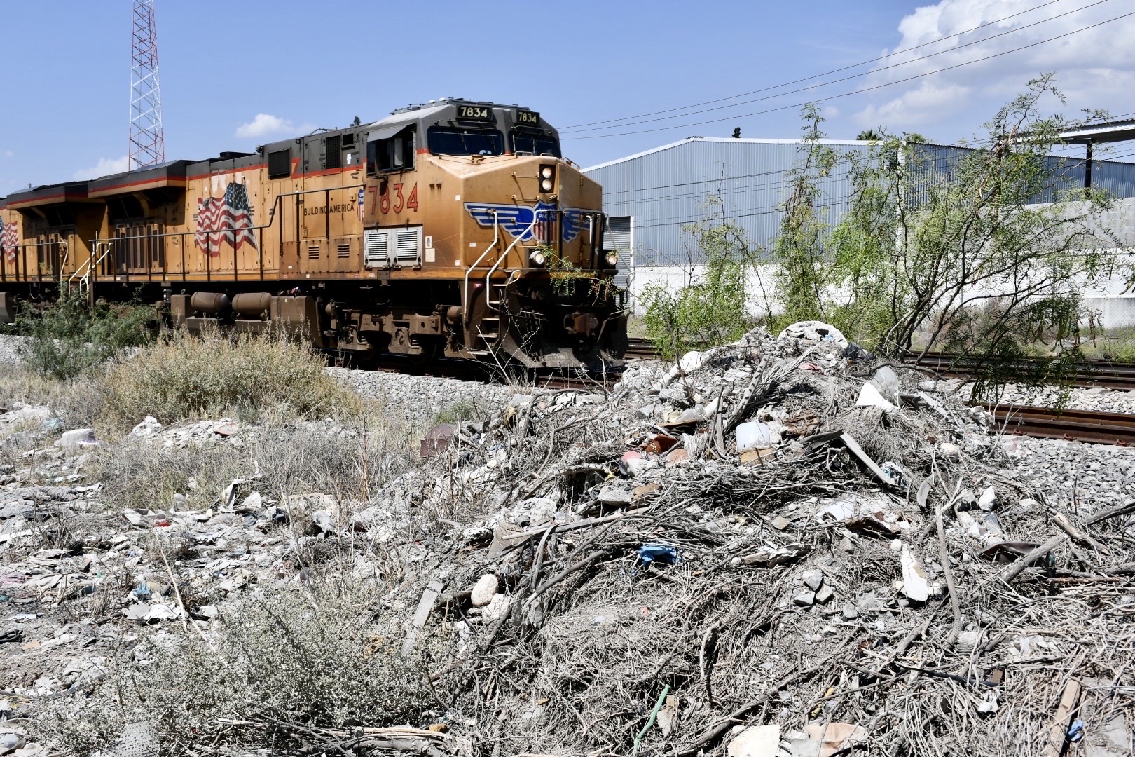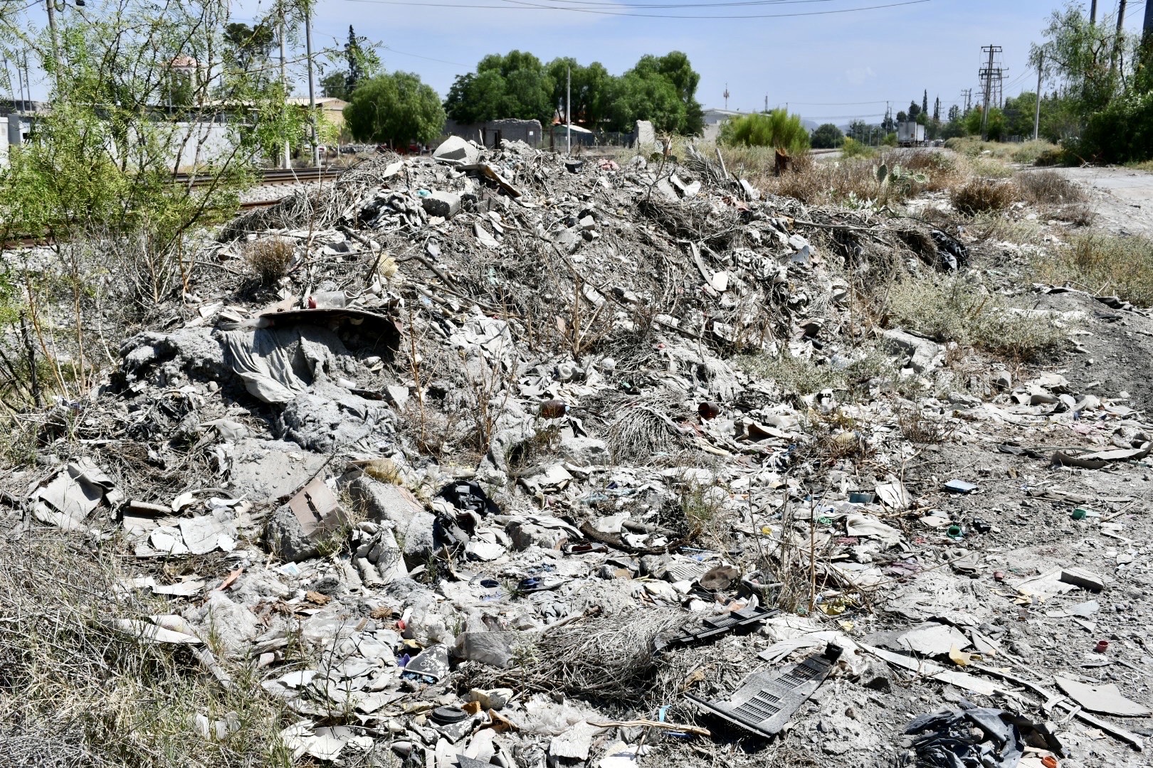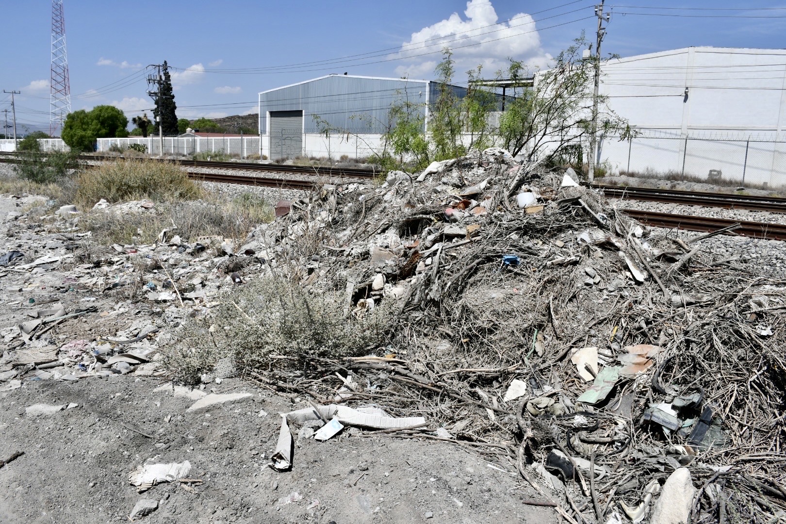 Entre la maleza abunda la acumulación de basura que de forma inconsciente y desmedida continúa siendo arrojada en los costados de las vías del tren, ubicadas a la altura de la calle Ignacio Zaragoza con dirección hacia la carretera Los Pinos, en el sector de la colonia La Esmeralda en Ramos Arizpe.