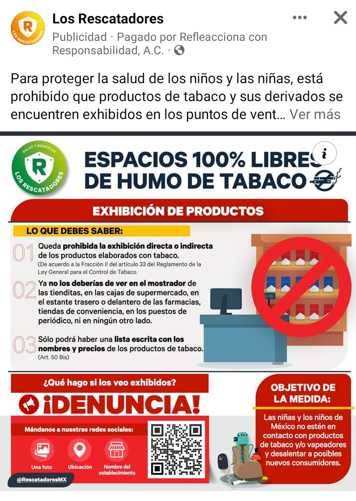 “El objetivo de la medida es que niños y niñas de México no estén en contacto con productos de tabaco y/ o vapeadores y con esto desalentar a posibles nuevos consumidores”, señala la publicación.