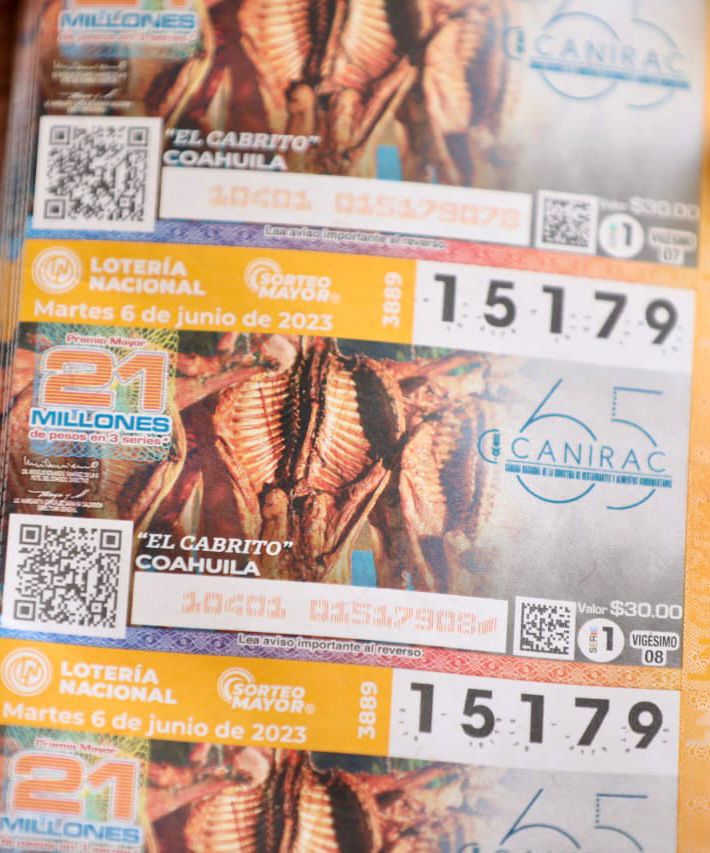 Y es que, en el marco del 65 aniversario de la Cámara Nacional de la Industria de Restaurantes y Alimentos Condimentados, CANIRAC, se han develado billetes de la Lotería Nacional con platillos representativos de cada estado y para Coahuila se escogió como platillo el cabrito.
