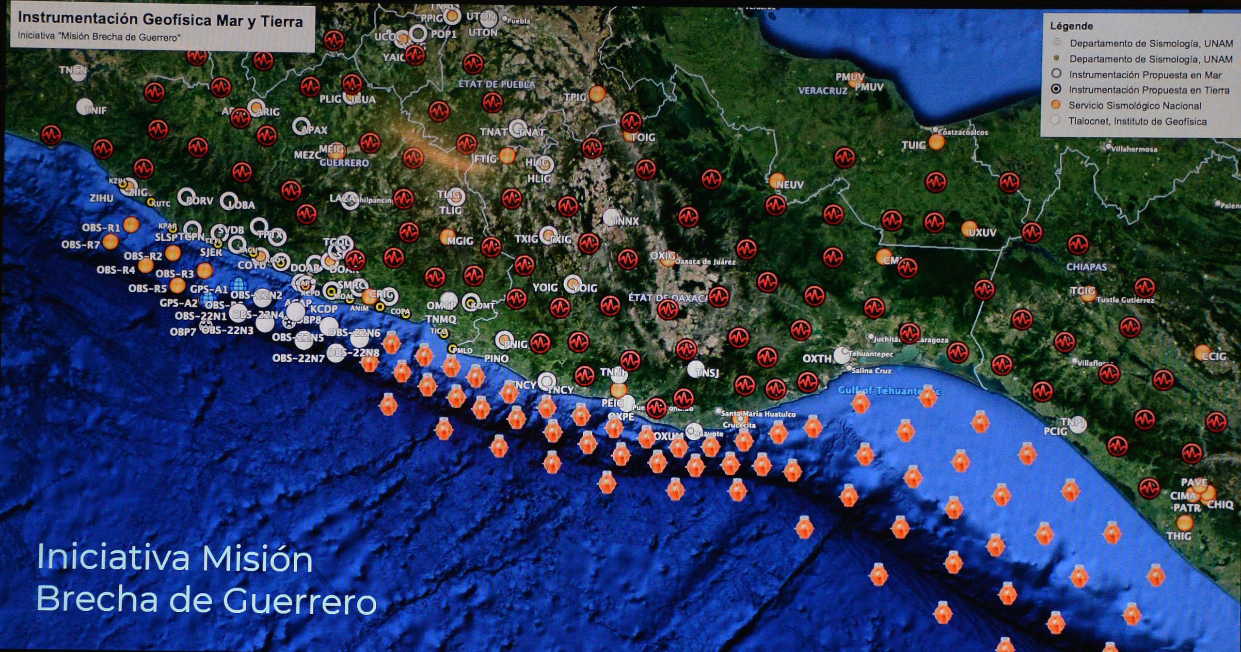 En conferencia de medios titulada “México, primer país del mundo en medir la rotación del fondo oceánico producida por sismos lentos”, realizada en el auditorio Tlayólotl de esa entidad académica, agregó que se instaló una red anfibia (en mar y tierra). “Se pusieron estos instrumentos en el fondo del mar en nuestras costas para estudiar los sismos lentos que ocurren en nuestro país”.