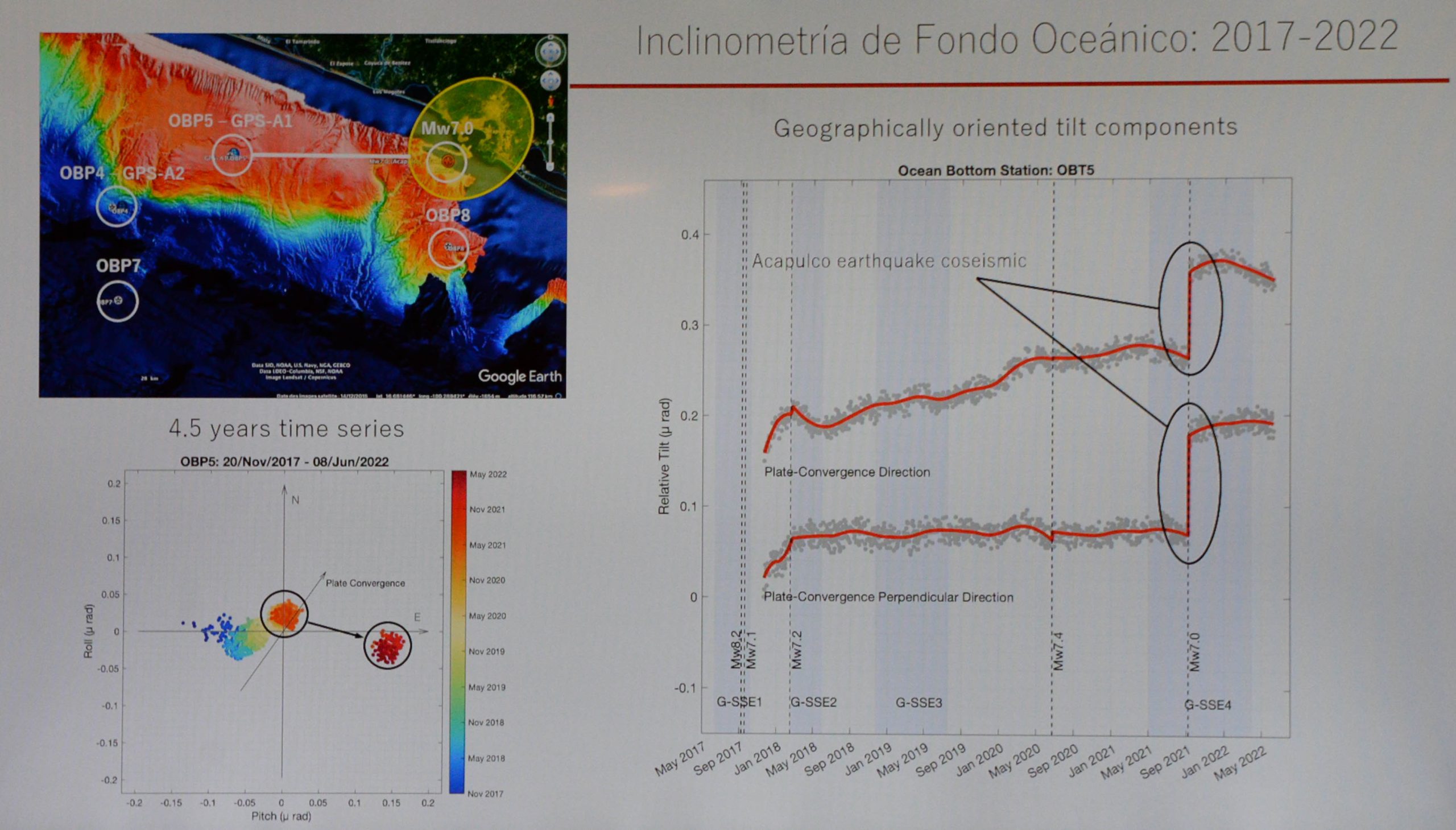 Al comprobar los datos recogidos por los inclinómetros en diversas campañas oceanográficas, los científicos descubrieron, sumando otros registros del aparato, que podían conocer cuánto había rotado el fondo marino como resultado de dos sismos lentos bajo el mar entre julio y septiembre de 2021 el primero, y entre enero y abril de 2022, el segundo.