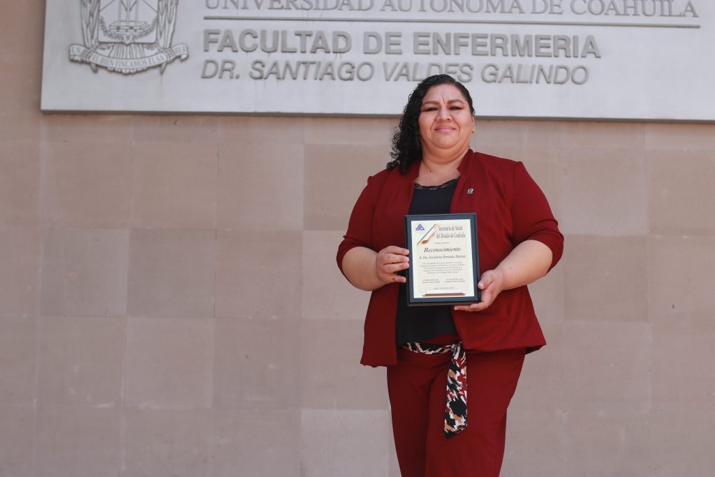 Durante el evento se entregaron reconocimientos a 54 profesionales de la Enfermería de diversas instituciones de Coahuila, entre ellos, la directora de la Facultad de Enfermería, Dra. Eva Kerena Hernández Martínez, por su destacada trayectoria profesional, su entrega al impulsar la disciplina de enfermería a nivel local, nacional e internacional, así como por la dedicación que ha mostrado en la formación de Licenciados al frente de la Facultad.