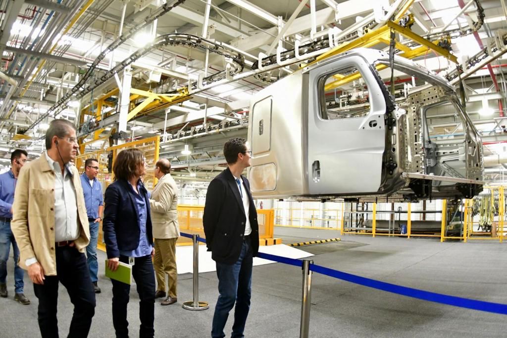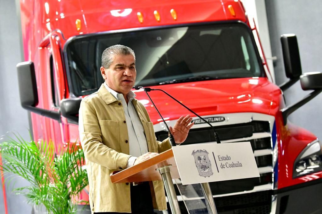El gobernador Miguel Ángel Riquelme Solís y el alcalde José María Fraustro Siller visitaron la Planta Daimler Truck, en Derramadero, en donde fueron recibidos por Jane Rosaasen, Directora General de esta planta.