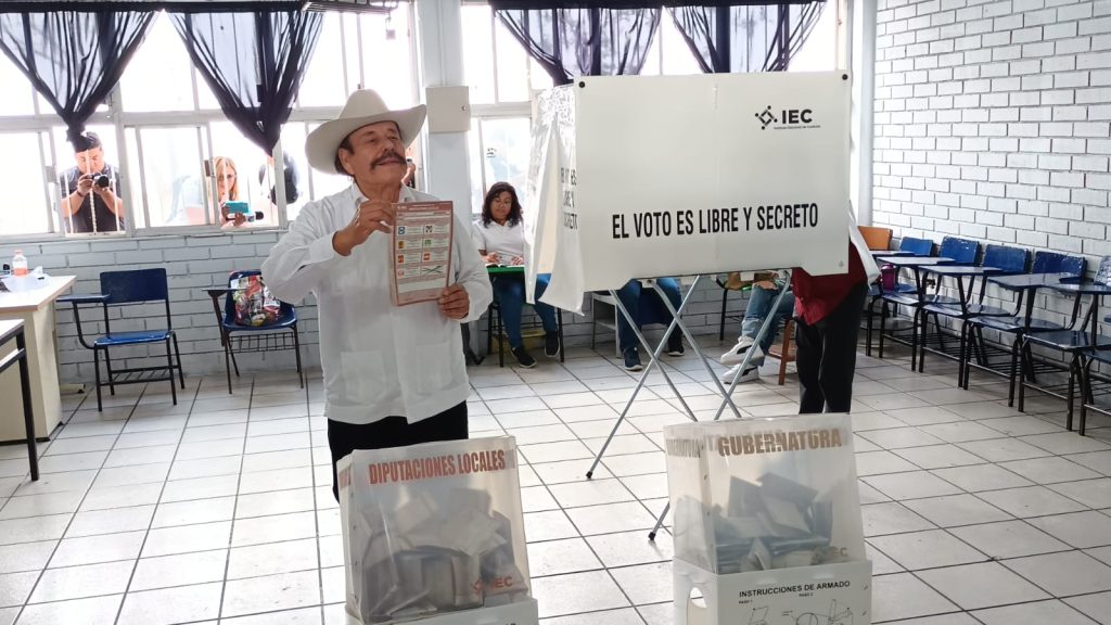En punto de las 9:30 de la mañana de este domingo, el candidato de Morena a la Gubernatura, Armando Guadiana Tijerina acudió a la Escuela Secundaria Ejército Mexicano, ubicada en la colonia Rancho de Peña, en Saltillo, para emitir su voto; en el acto estuvo acompañado del líder nacional de Morena, Mario Delgado, quien aseguró que tanto en Estado de México como en Coahuila el triunfo será del Movimiento de Regeneración Nacional.