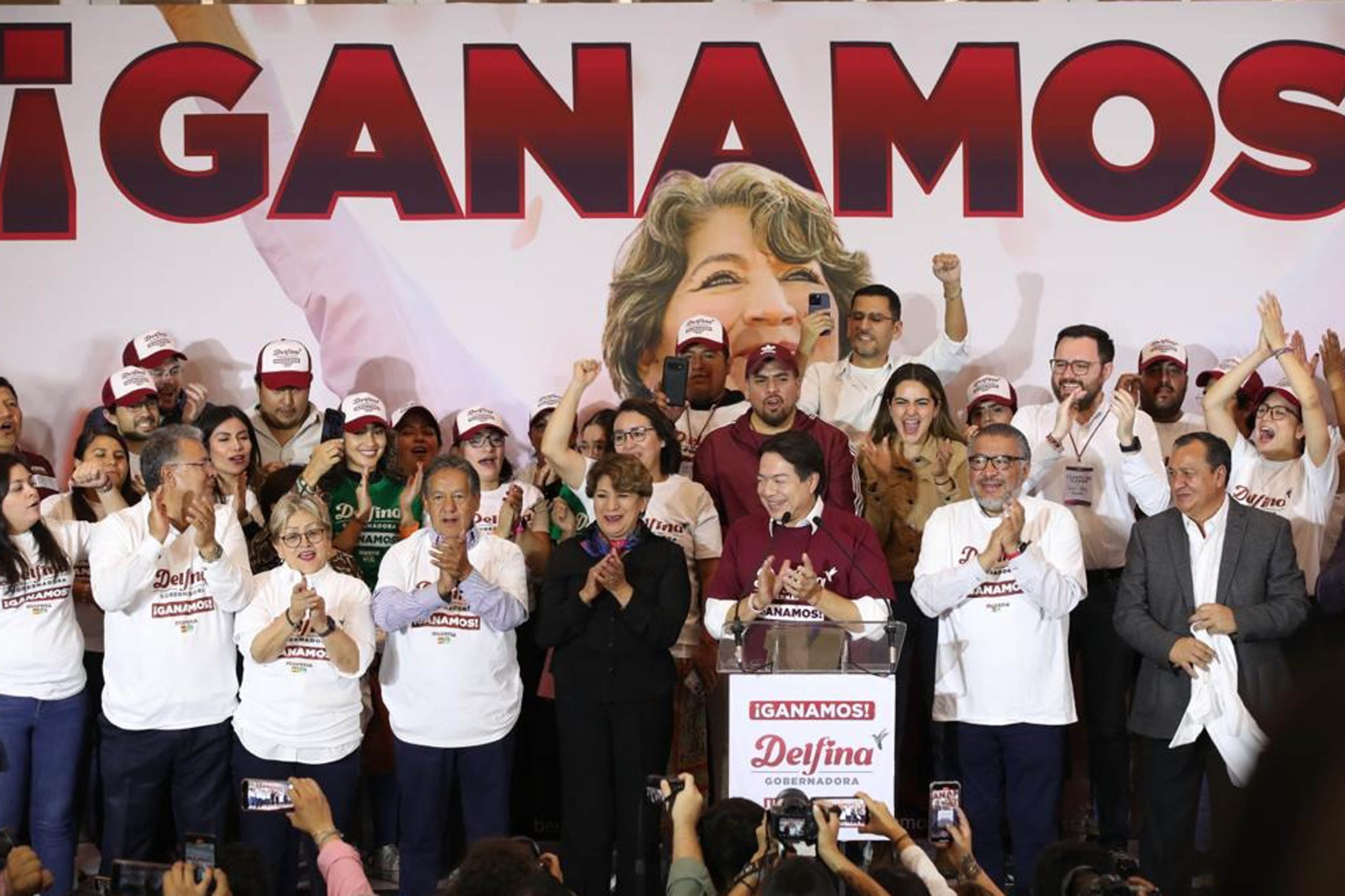 En tanto, el líder de Morena, Mario Delgado dijo que la maestra Delfina ganó de forma contundente y por más de dos dígitos. (EL UNIVERSAL)